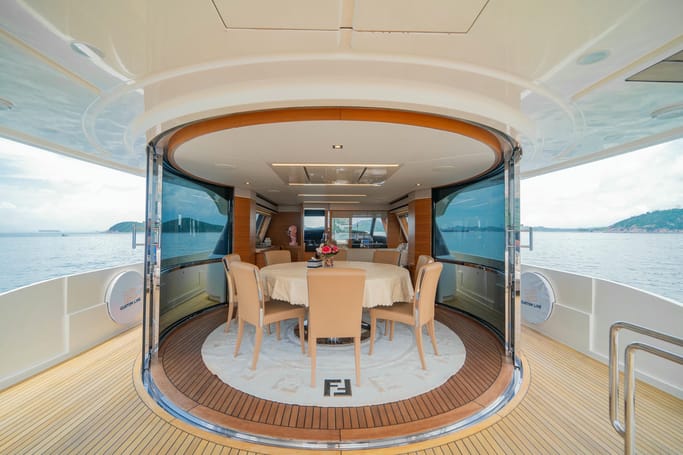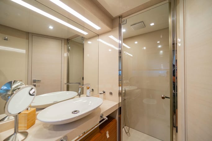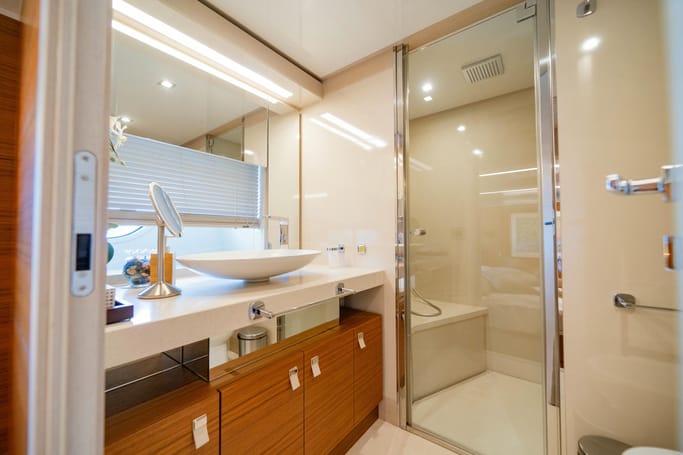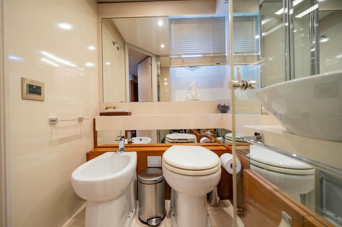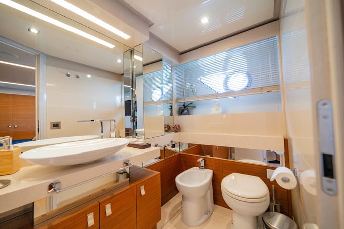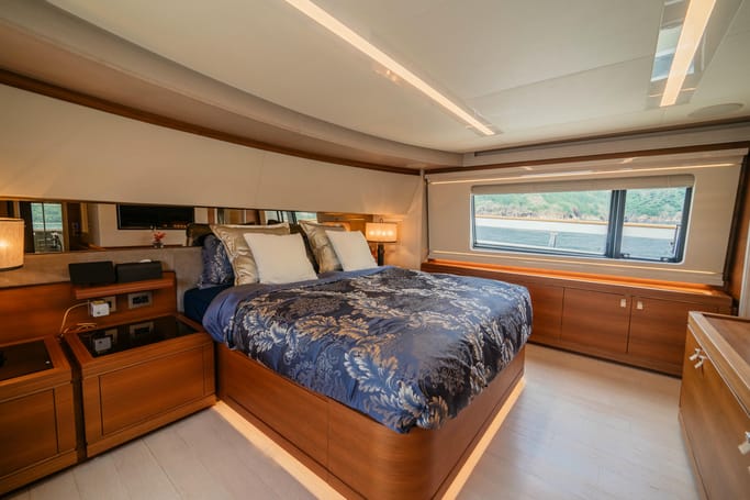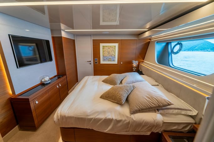 The Navetta 28 exemplifies the ‘slow motion’ philosophy of Ferretti Custom Line yachts. These semi-displacement maxi yachts are designed for fuel efficiency, enabling long trips like sailing to Corsica without refueling. Onboard, you’ll be captivated by the sophisticated interiors crafted by top international designers. The yacht offers spacious living areas, luxurious cabins, and innovative equipment, ensuring a unique and memorable experience.