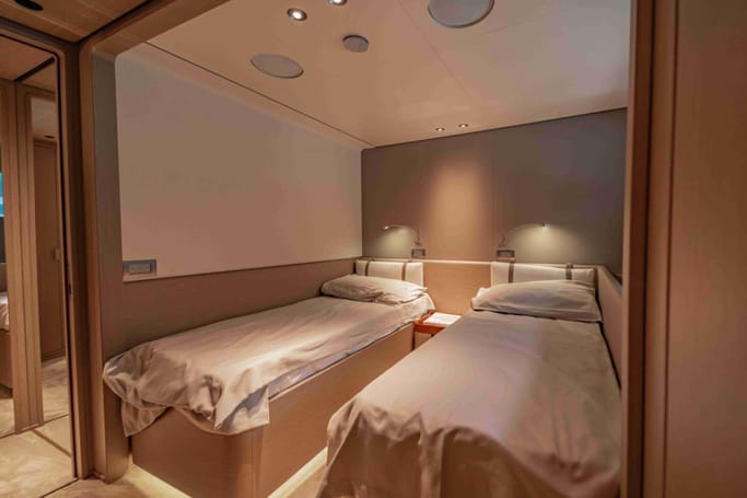The Custom Line Navetta 30 is a 28.43-meter (93’3″) tri-deck displacement motor yacht built by Custom Line, part of the Ferretti Group, and first delivered in 2022. Designed for long-range cruising, it combines spacious interiors with elegant exterior lines, offering exceptional volume and comfort for its size.