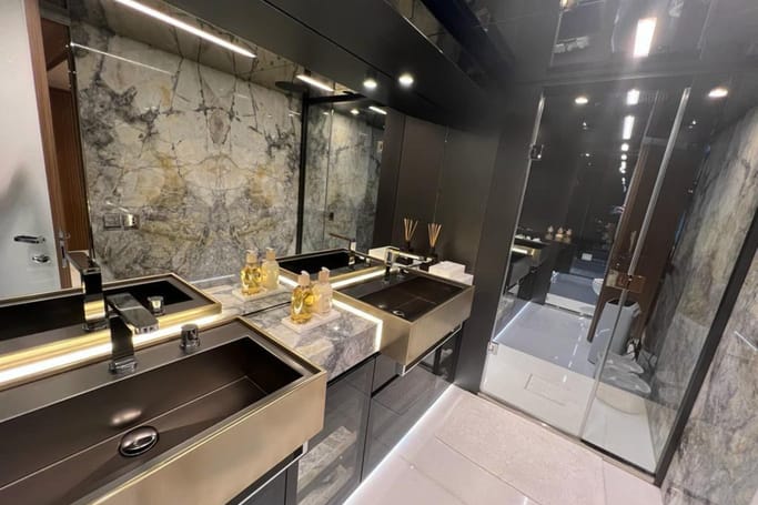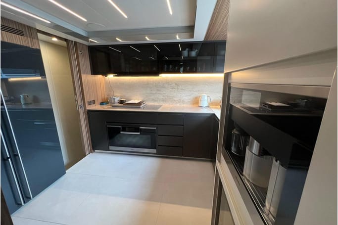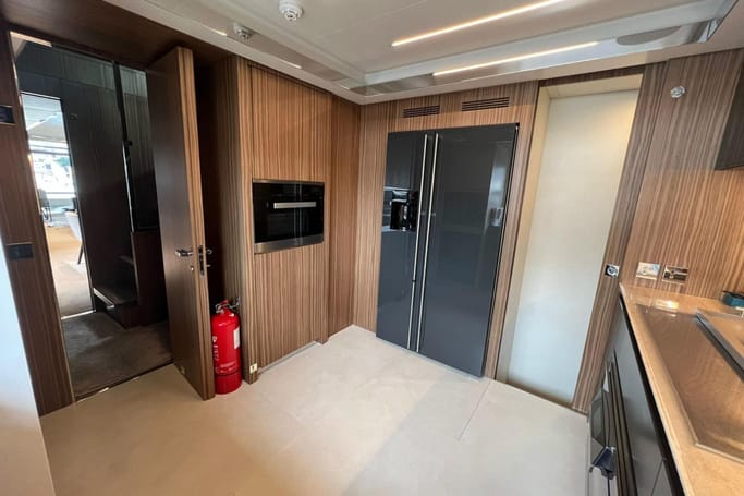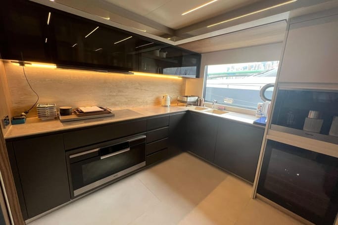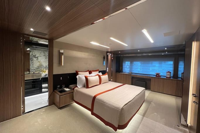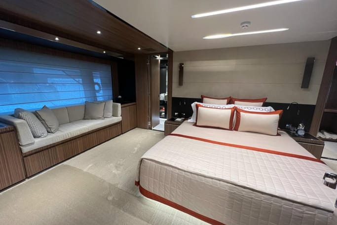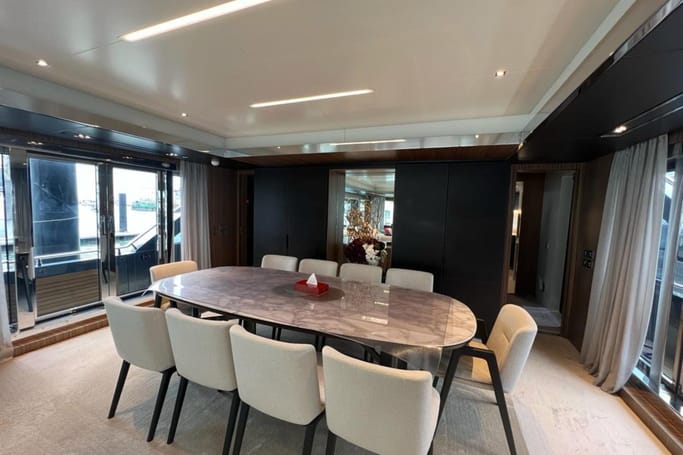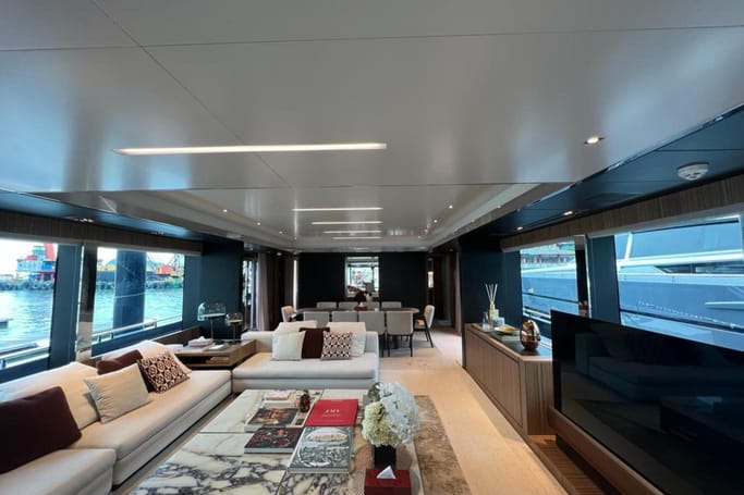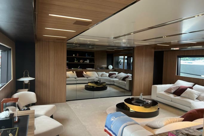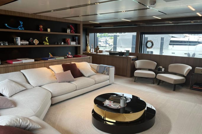 Designed for those with a taste for the exceptional, the Dolcevita features generous outdoor areas—from the expansive aft deck and elegant foredeck lounge to a sweeping flybridge complete with a bar, sun loungers, and open-air dining. Inside, floor-to-ceiling windows and a fluid layout bathe the space in sunlight, while the interior’s curated palette of fine woods, supple leathers, and custom furnishings evokes a sense of quiet luxury.
