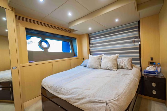 Experience the epitome of luxury with the 2014 Sunseeker 75 Yacht, a stunning masterpiece of British craftsmanship that combines sophisticated design with exceptional performance. Spanning 22.98 meters, this sleek motor yacht is made from high-quality GRP (Glass Reinforced Plastic), ensuring both durability and style. The Sunseeker 75 accommodates up to eight guests across four elegantly designed cabins, including a lavish master suite and a VIP cabin, each with en-suite facilities, along with two additional cabins for family or friends.