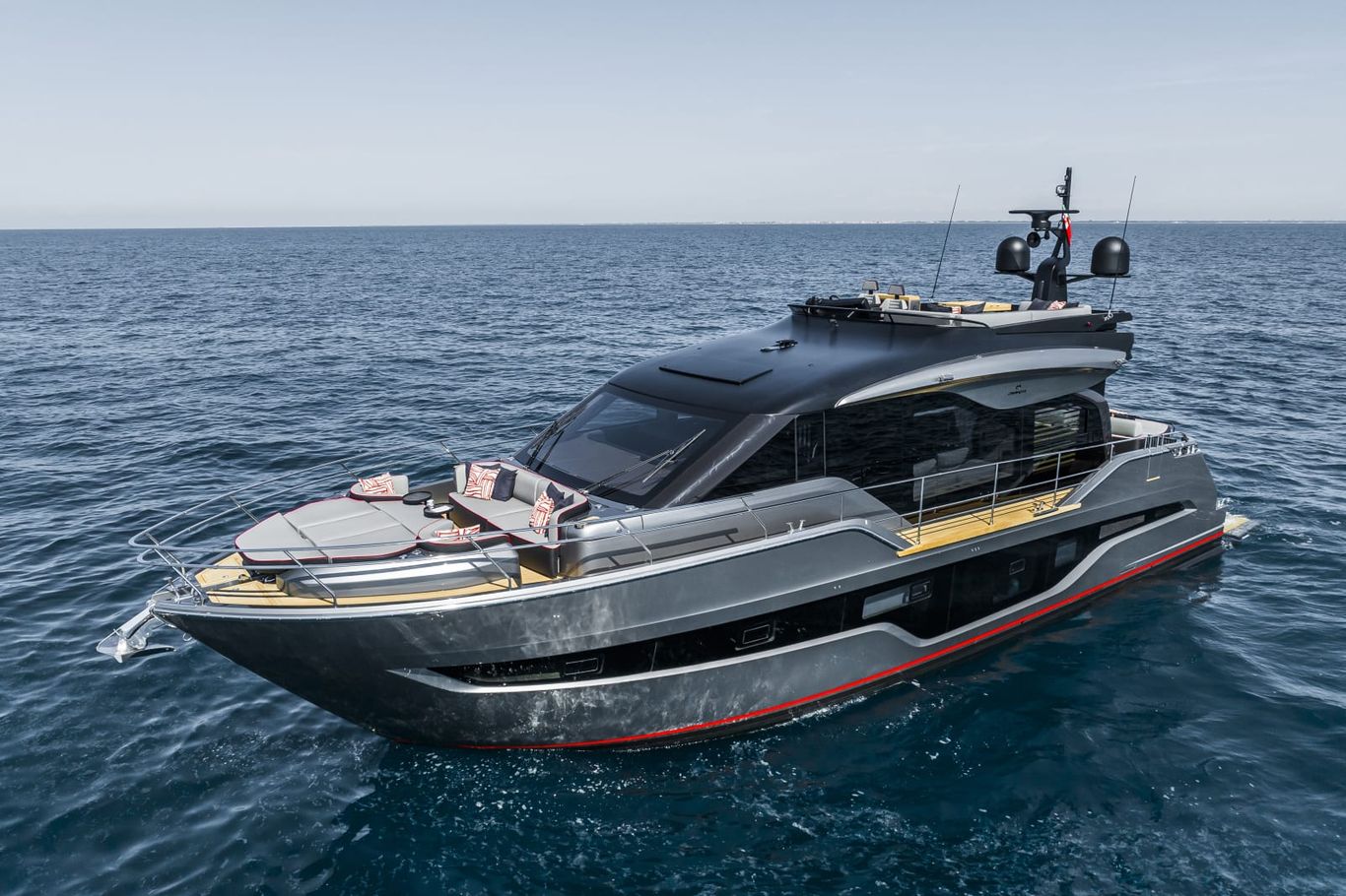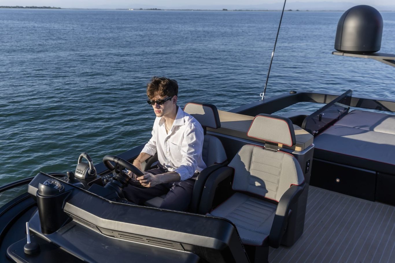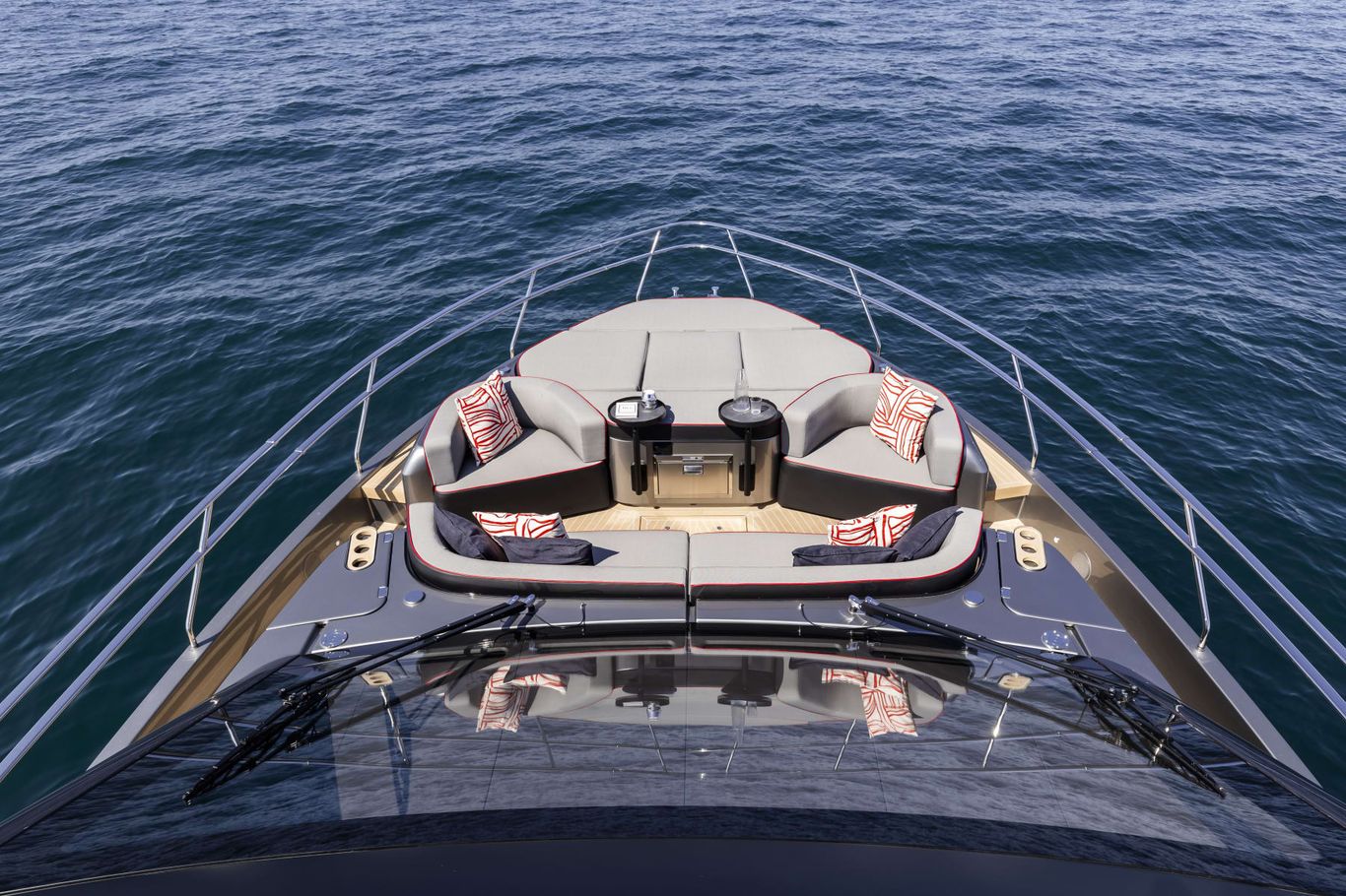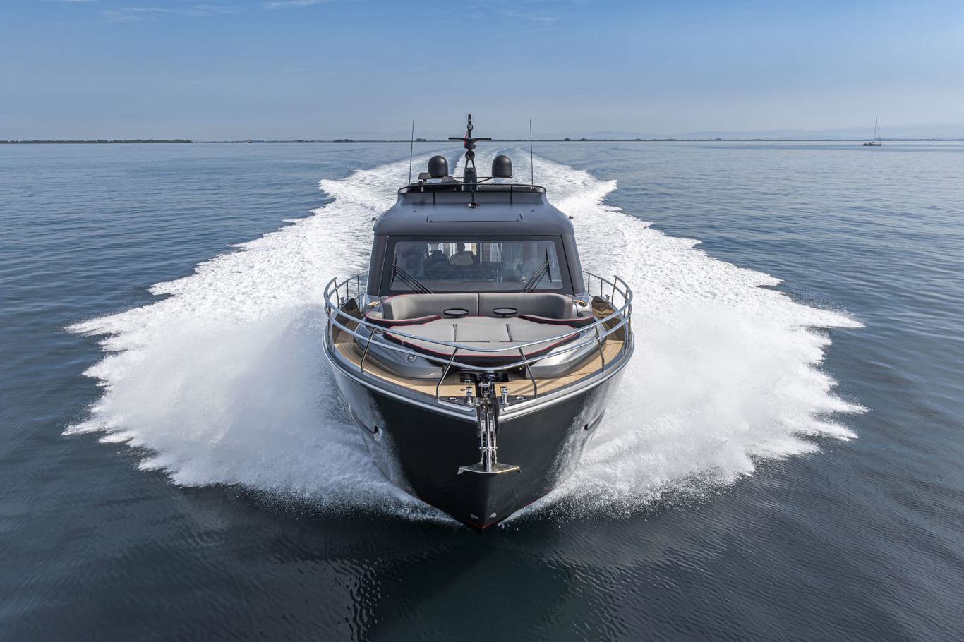 The Sessantasette 67 Corsa is a true sea coupé—its dynamic presence felt from the very first glance. The upper deck evokes the spirit of a sportbridge, featuring a refined mini-fly design without a t-top. This creates a silhouette that’s both streamlined and assertive, underscored by the forward-thrusting pulpit and signature red detailing that define the Corsa’s sporty character.