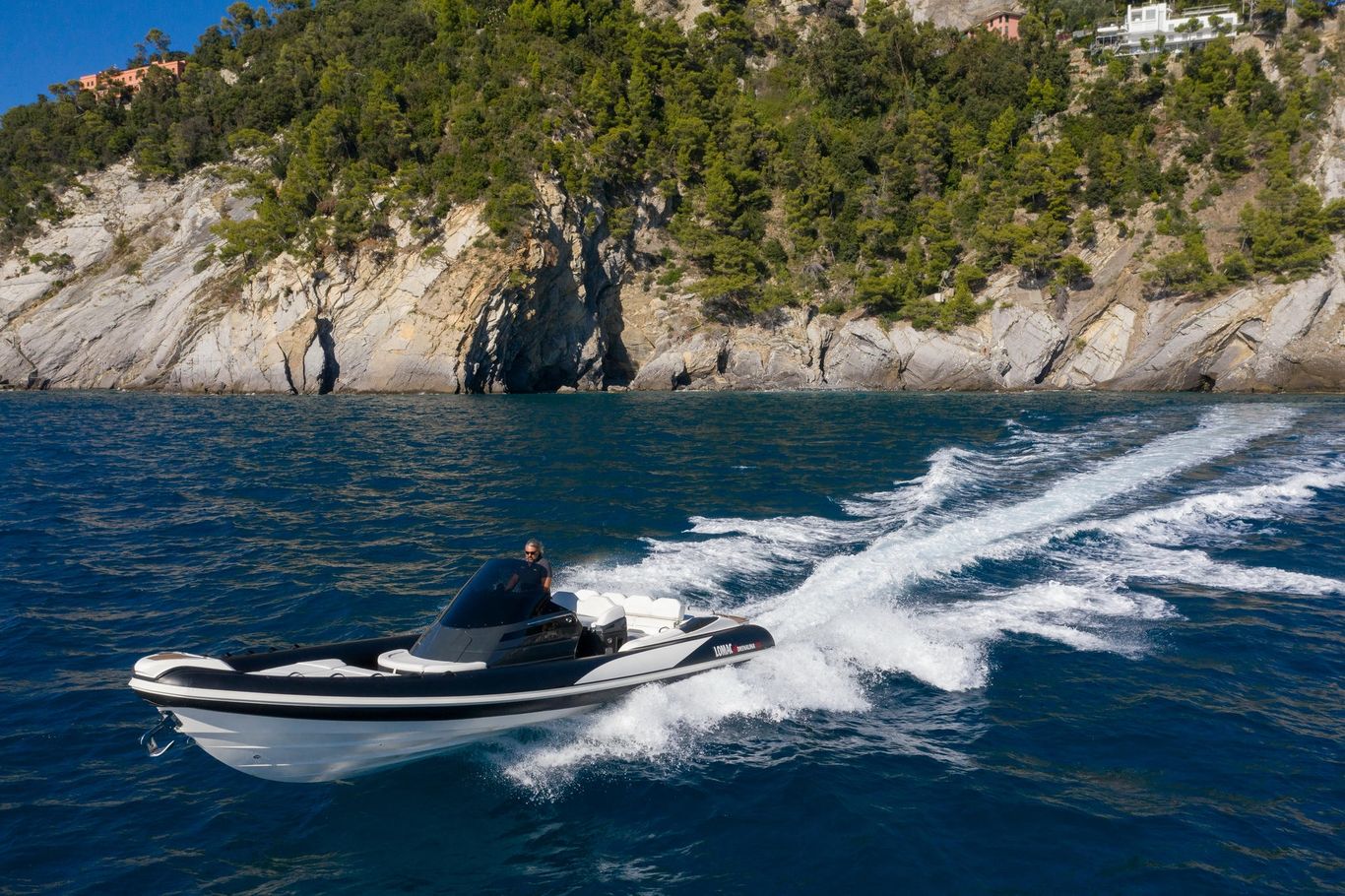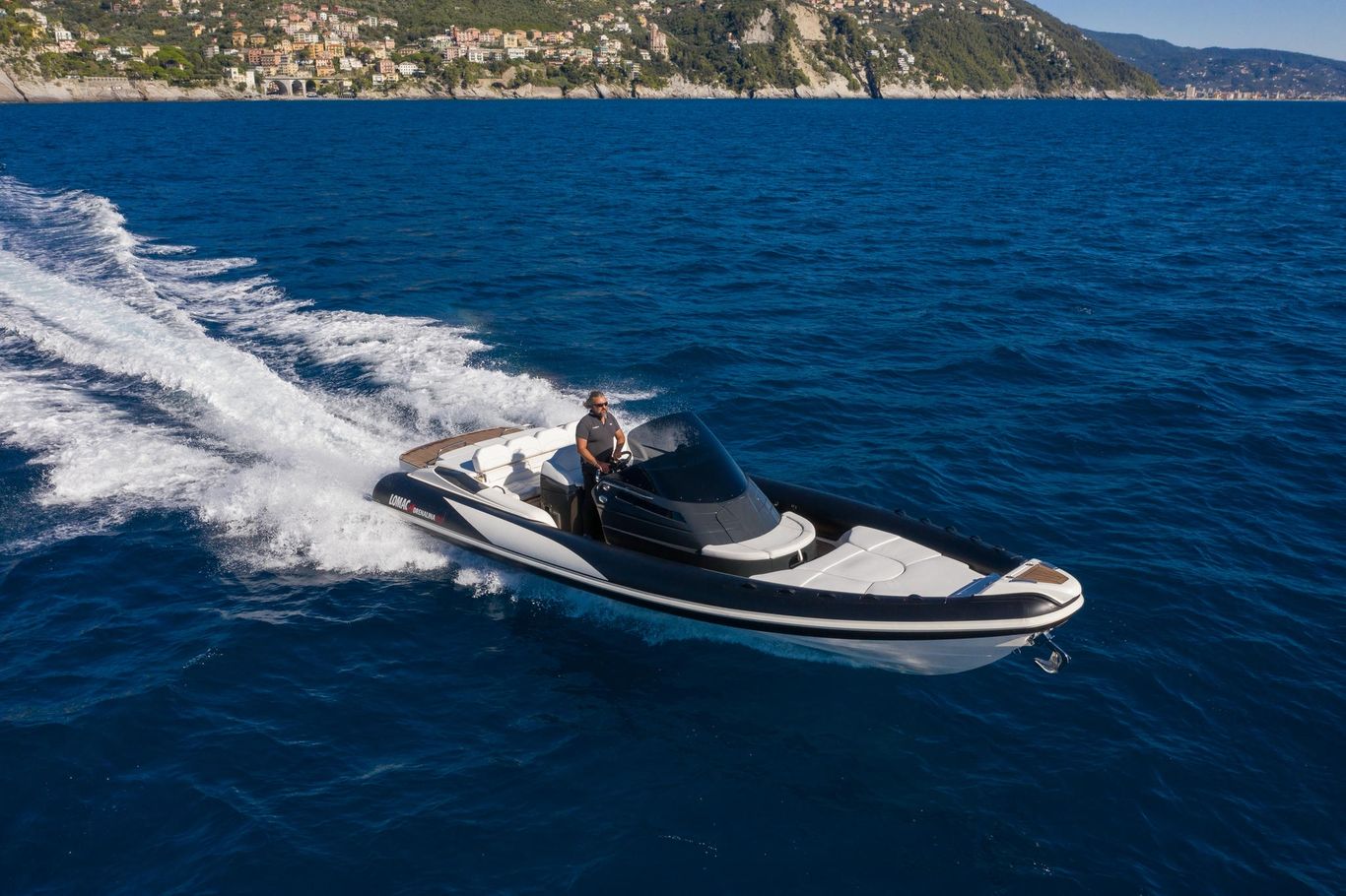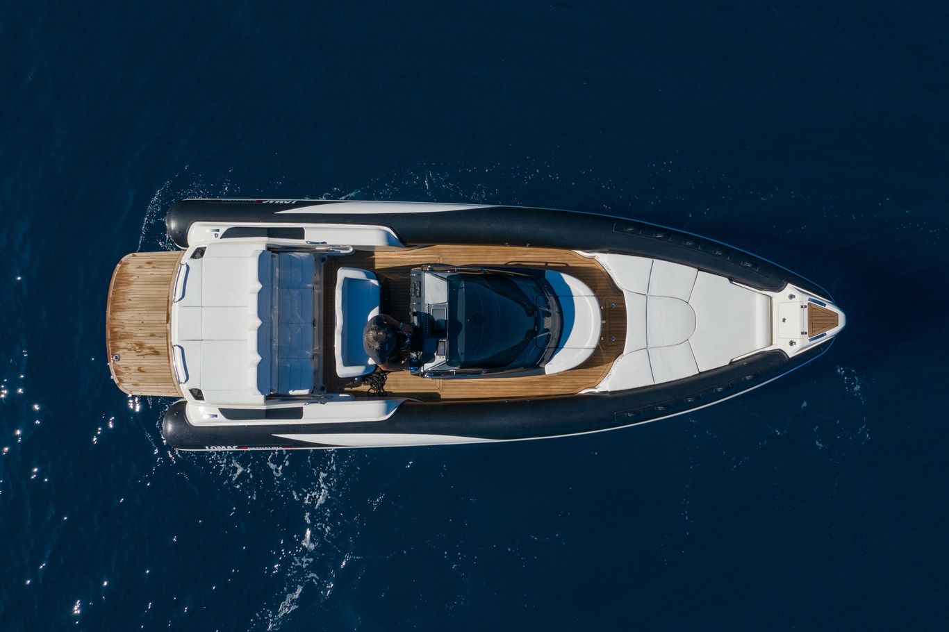With a signature style by celebrated designer Federico Fiorentino, the Lomac Adrenalina range offers a unique combination of performance, control, seaworthiness, and superior comfort. Built to uncompromising standards, its construction—including vacuum infusion lamination, a neopentyl gelcoat, aramid fiber reinforcements, and CFD-optimized hulls—guarantees speed and safety. This makes it the perfect choice for groups of friends, a few couples, or an energetic, curious family seeking a fast and safe way to explore.