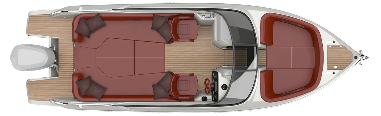 The E26 Rider is an innovative bowrider, equipped with an outboard engine. The stem and fluid lines of the hull convey a sense of sportiness and elegance: a contemporary classic, with a surprising versatility. Day cruiser or luxury tender: it could be either. You could even call her a “luxury day tender”.