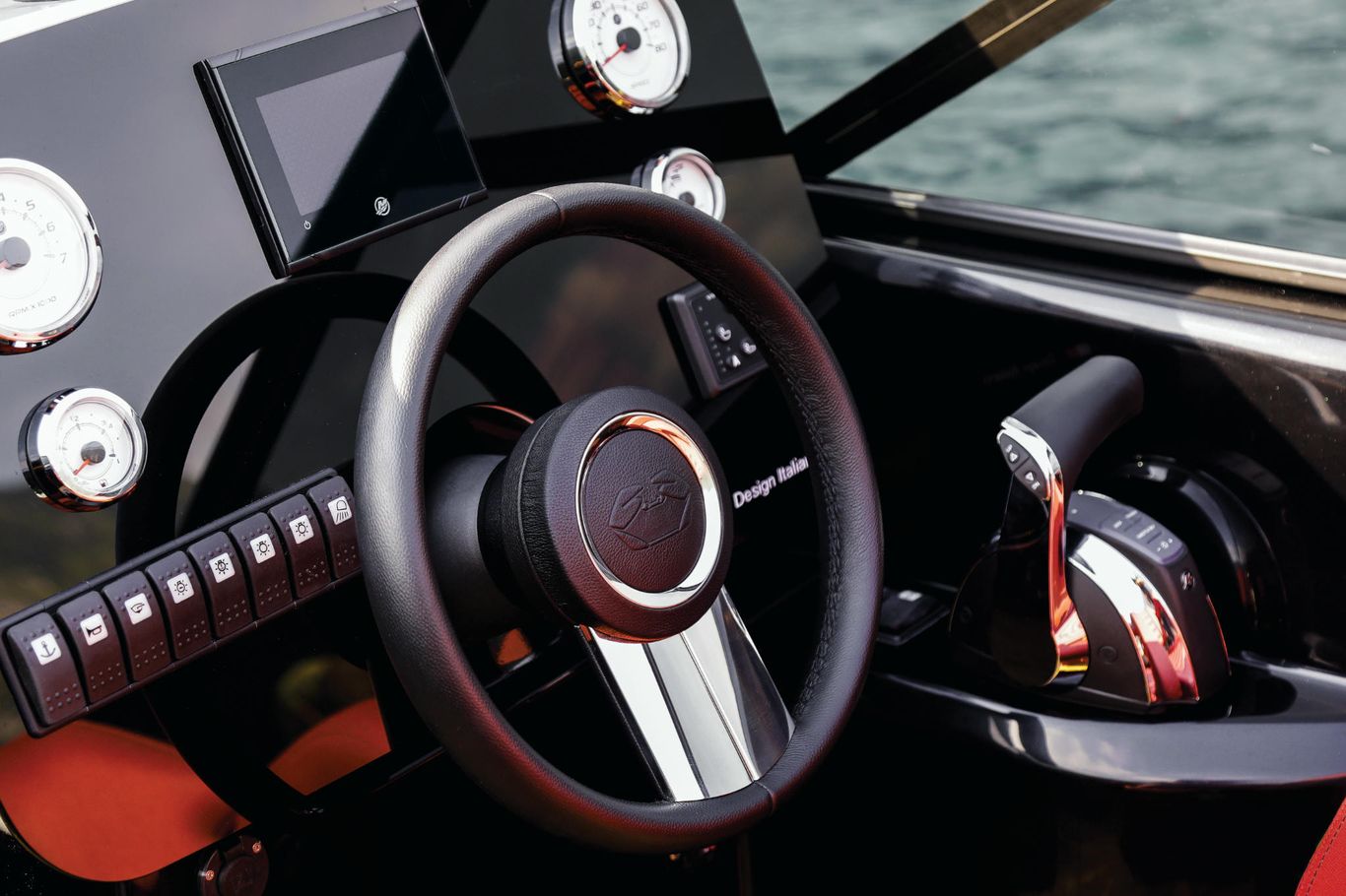 The distribution of the spaces flow harmoniously through the centre of the boat and the cockpit is the true heart of this yacht: an elegant, and surprisingly spacious, area with functional solutions that offers maximum freedom to those on board. In perfect symmetry, there are two large wall sofas facing each other, while the pilot and co-pilot have swivel chairs that can turn towards the sofas to create an extension of the entertainment area. To the left of the navigation area, there’s a small sink and restroom.