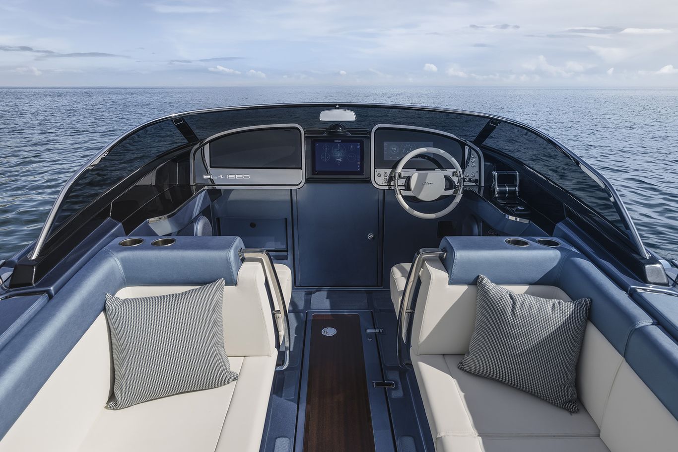 This formidable mix of innovation and heritage is perfectly captured by Riva El-Iseo, the brand’s first full-electric powerboat that launches the new E-Luxury segment under the banner of sustainability. Riva El-Iseo is a 27-foot (8.40 m) runabout with a maximum beam of 2.5 m and elegant and sophisticated lines, just like the much-loved and versatile Iseo from which it inherited the hull design.
