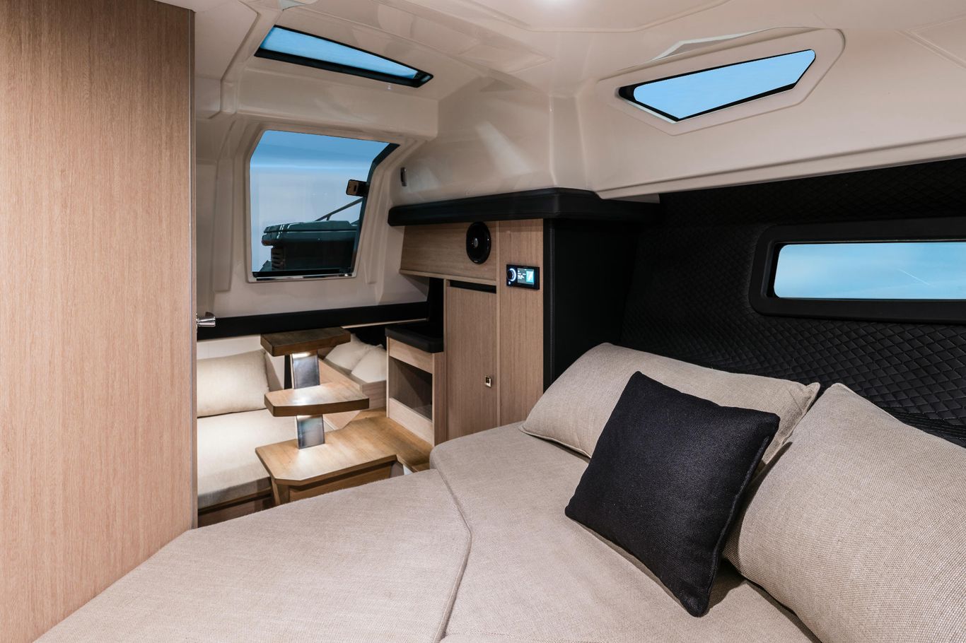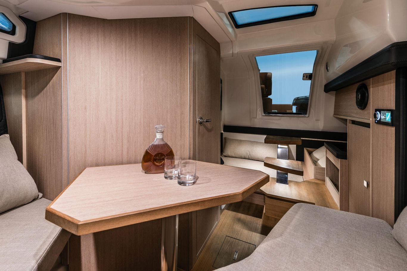 The E30 is designed to make it easier to hook up your electronic devices, as you can see from the watertight USB sockets in the navigating area and cockpit and from the practical, universal wireless smartphone charger located in the navigating bridge.