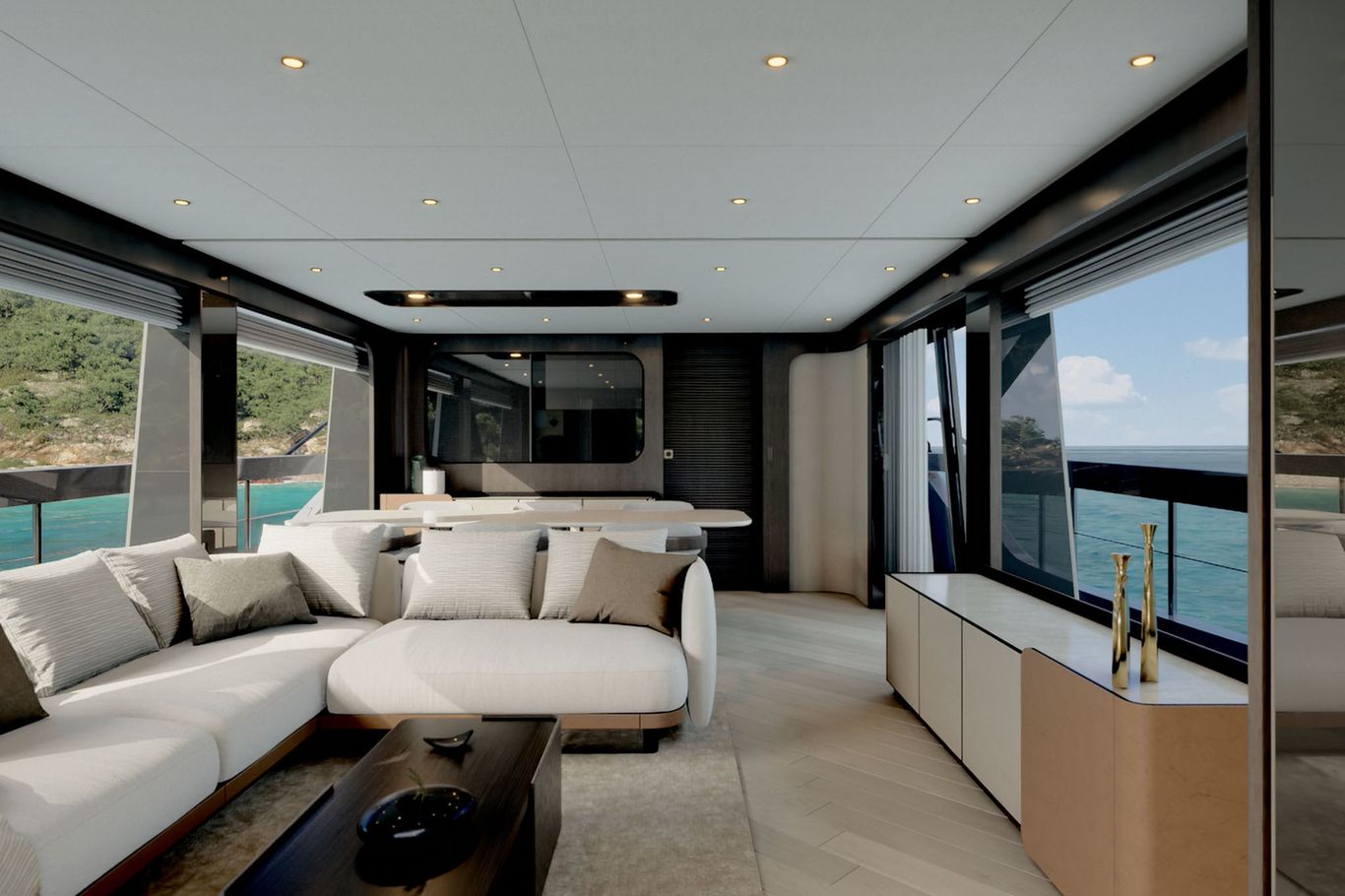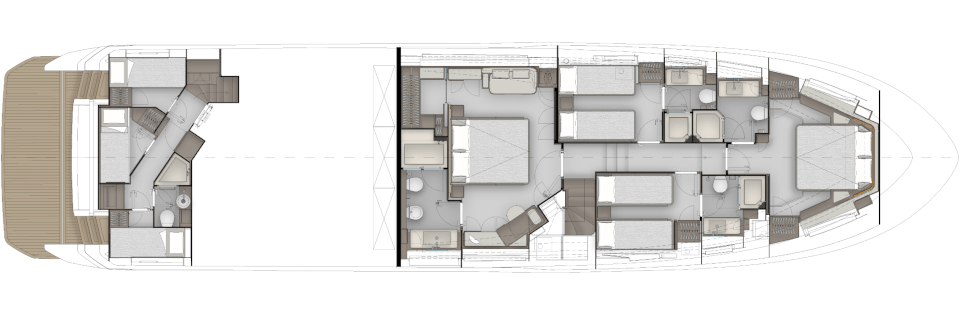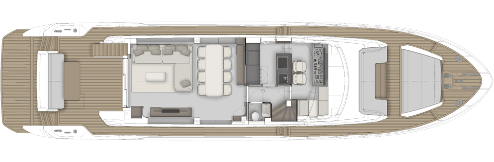 Completing the stylistic evolution process, curated by the architect Filippo Salvetti, for the exterior design and by IdeaeItalia for the interiors, Ferretti Yachts 800 is designed to offer the owner peerless comfort and a superior on-board lifestyle for a boat this size, thanks to optimised spaces and meticulous layout planning.