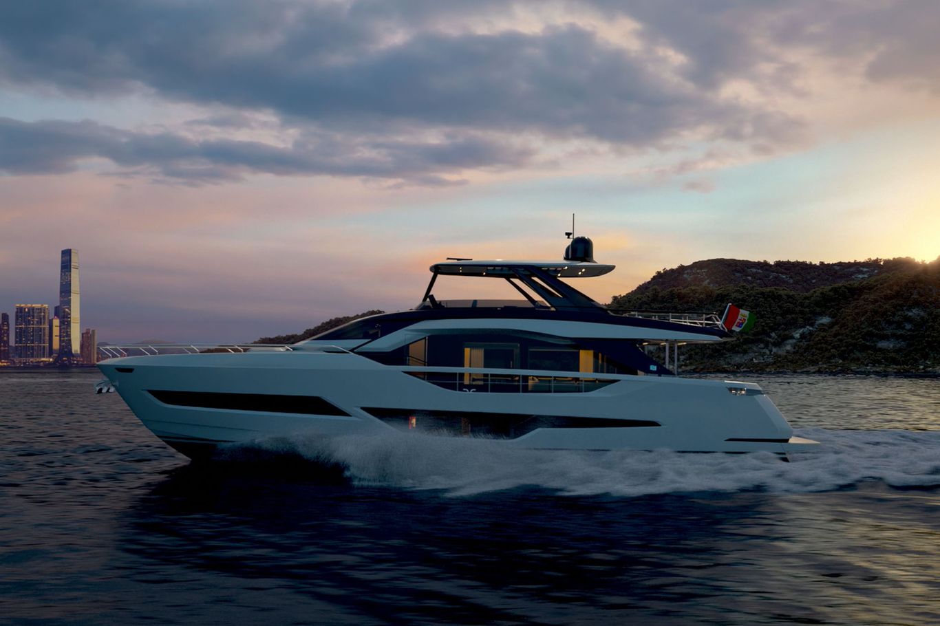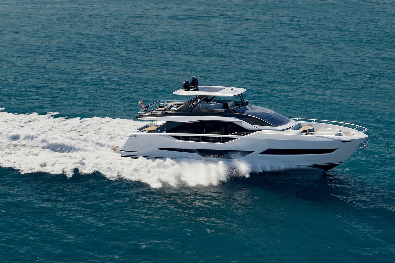 The new Ferretti Yachts 800 flybridge has a bold personality and aims to elevate the very concept of cruising through solutions that combine elegance and functionality with a special focus on privacy.