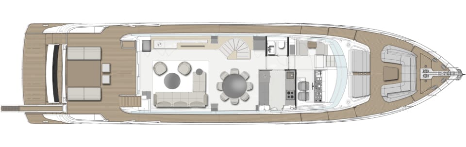 Composing a melody in which the notes of each individual instrument are beautifully orchestrated, Ferretti Yachts gears up to bring a new symphony to life: Ferretti Yachts 860. The flybridge yacht created by the Cattolica-based Shipyard features cutting-edge design and technology solutions, where the stylistic and architectural elements work together in harmony right down to the tiniest detail.