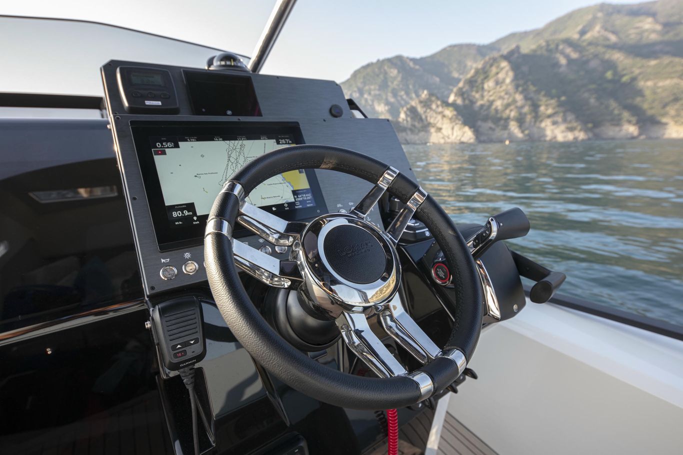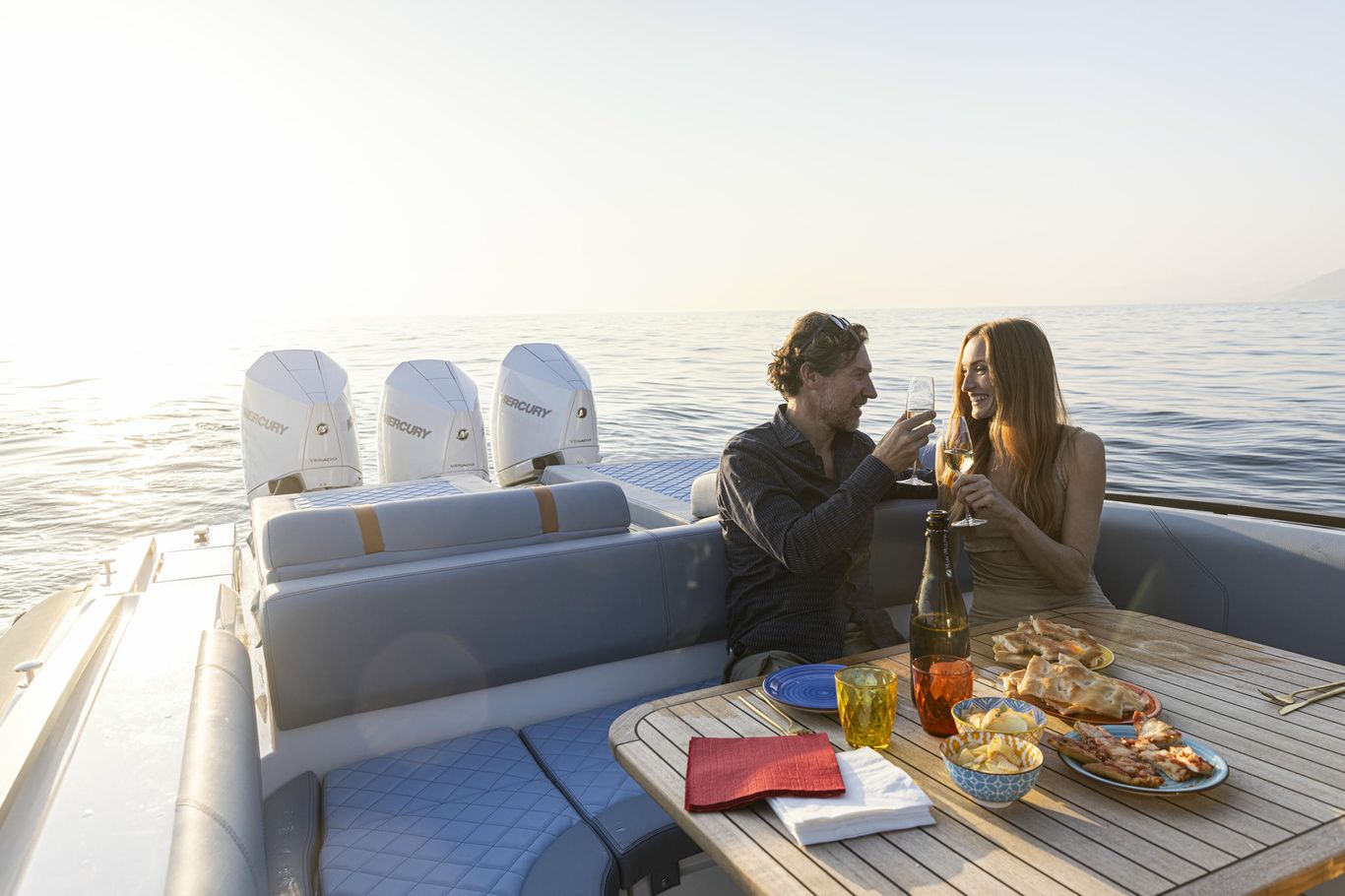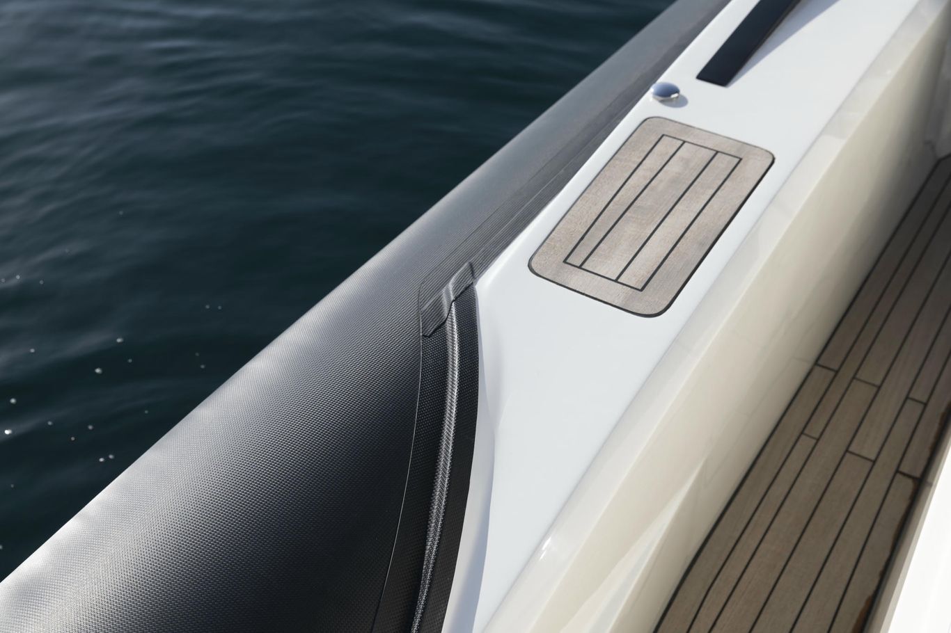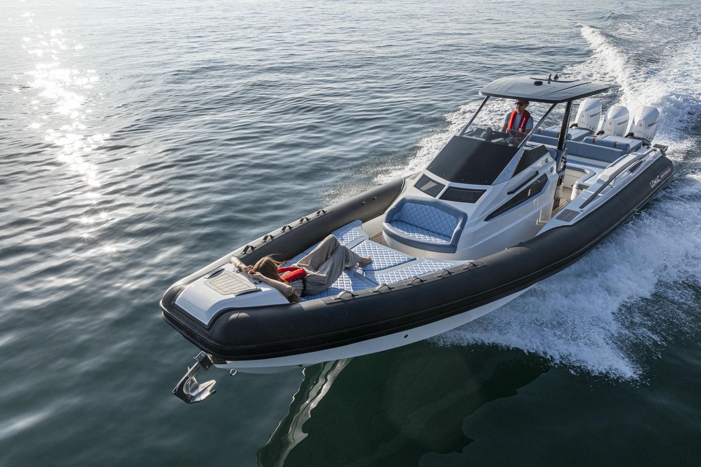 The GranTurismo line represents the peak of Lomac’s boat collection, born from three years of R&D aimed at balancing design, comfort, and performance. Its exclusivity shines through in fine details, material selection, and customization options. The build relies on CFD-optimized hulls, vacuum infusion lamination with vinyl ester resin, neopentyl gelcoat, and aramid fibers reinforcing the T-top, deck, and hull. Styled entirely in Milan by Federico Fiorentino, this maxi-rib is also an ideal luxury tender—and it’s simply unbeatable.