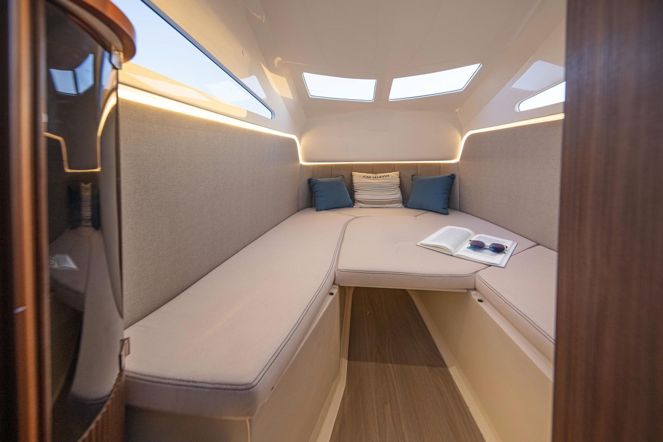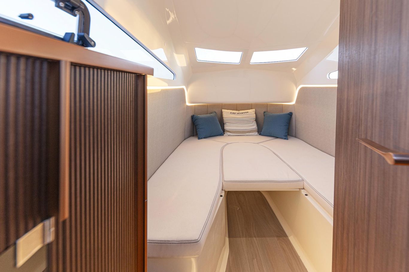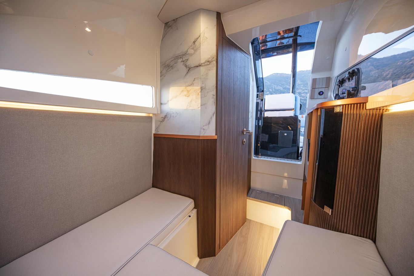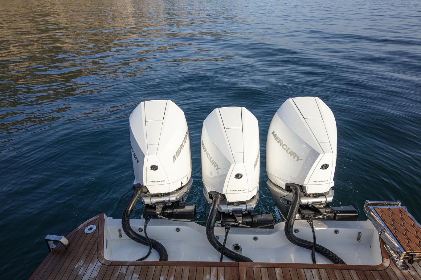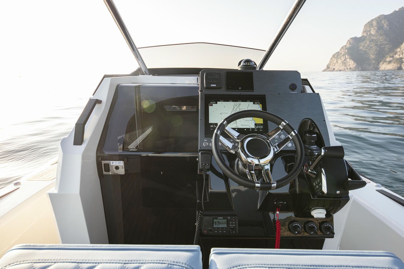 The GranTurismo line represents the peak of Lomac’s boat collection, born from three years of R&D aimed at balancing design, comfort, and performance. Its exclusivity shines through in fine details, material selection, and customization options. The build relies on CFD-optimized hulls, vacuum infusion lamination with vinyl ester resin, neopentyl gelcoat, and aramid fibers reinforcing the T-top, deck, and hull. Styled entirely in Milan by Federico Fiorentino, this maxi-rib is also an ideal luxury tender—and it’s simply unbeatable.