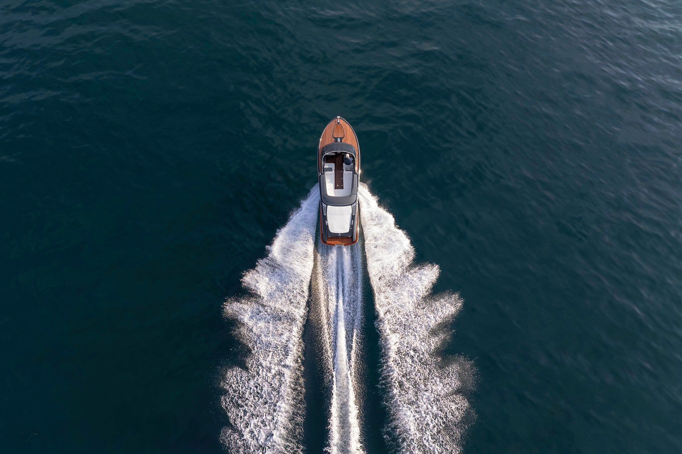 Riva Iseo Super – where timeless Italian elegance meets modern performance. This 27-foot (8.24 m) open runabout is a masterclass in craftsmanship, blending the iconic heritage of Riva with cutting-edge innovation. Featuring a flared bow, sweeping sheer, and a beautifully moulded tumblehome stern, the Iseo Super exudes sophistication from every angle. Its high-gloss striped mahogany, treated with 24 coats of varnish, and signature aquamarine waterline pay homage to Riva’s legendary style, while the new Vulcan Grey hull color adds a bold, contemporary edge.