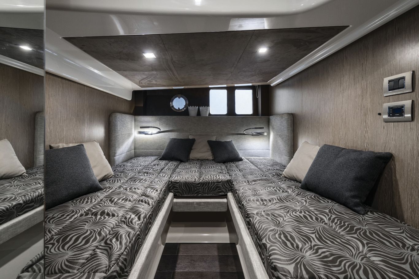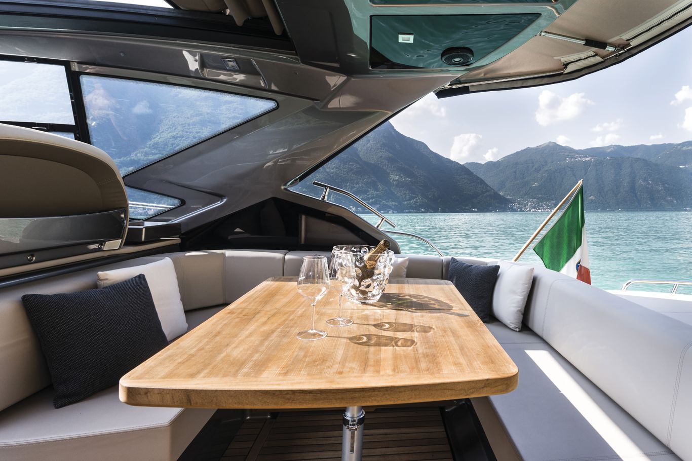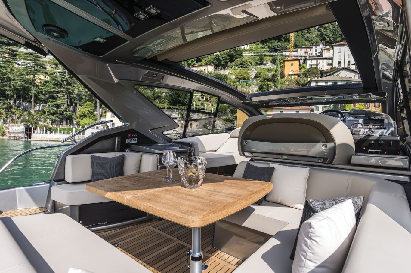 The soft top guarantees maximum shading in the cockpit and can also be opened fully, transforming the Cranchi M44 HT into an authentic open top. When you feel like being in the shade, the well-insulated sunroof creates a closed, warm space.