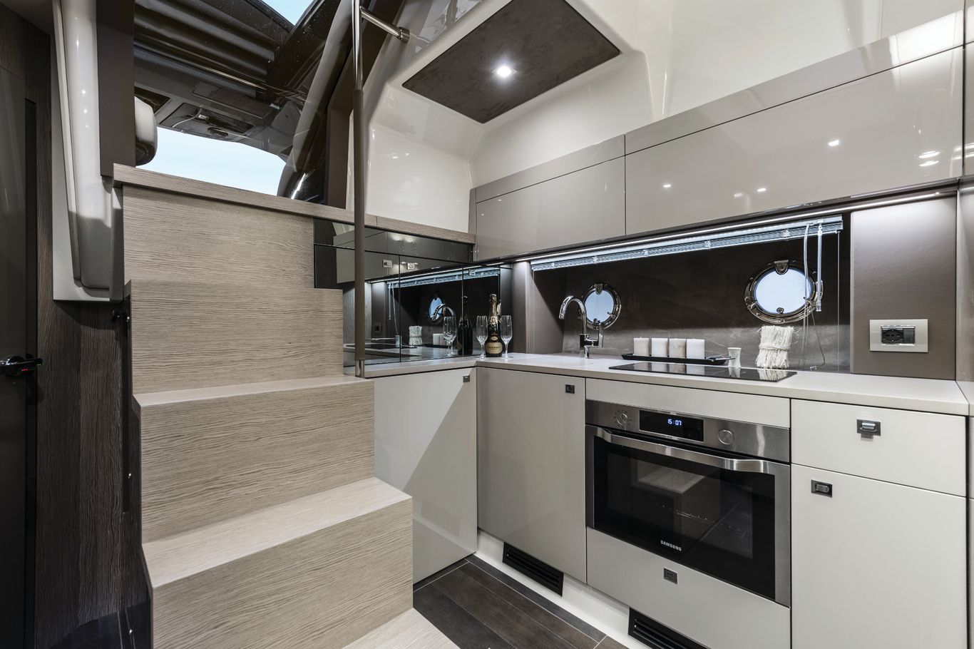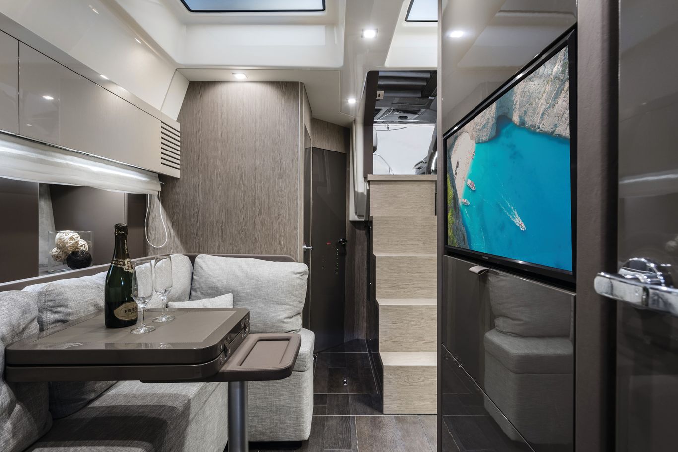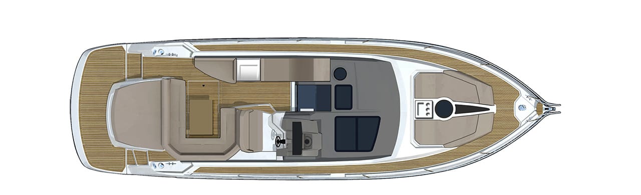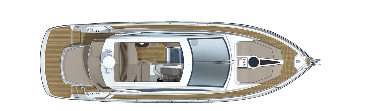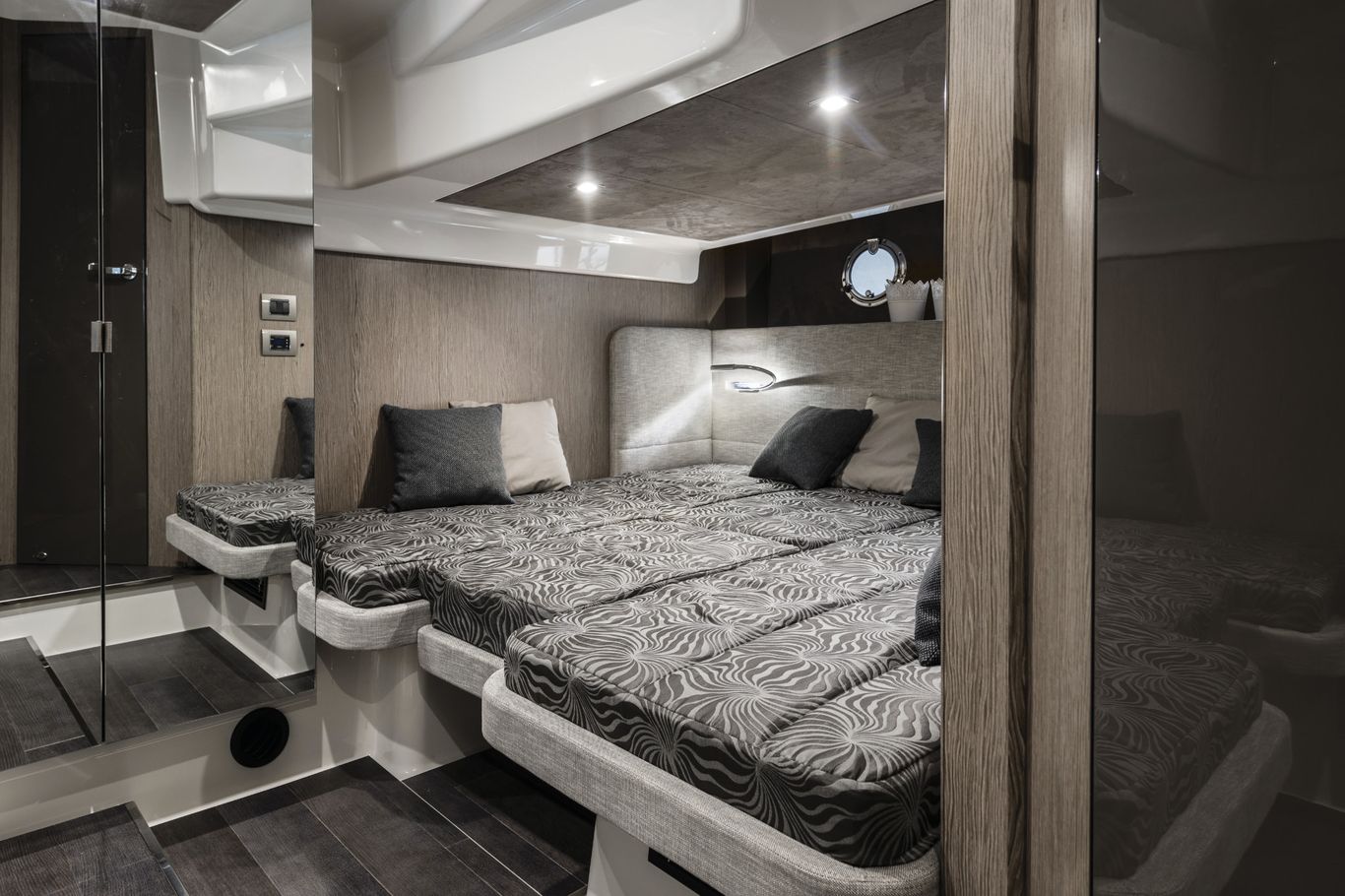 The soft top guarantees maximum shading in the cockpit and can also be opened fully, transforming the Cranchi M44 HT into an authentic open top. When you feel like being in the shade, the well-insulated sunroof creates a closed, warm space.