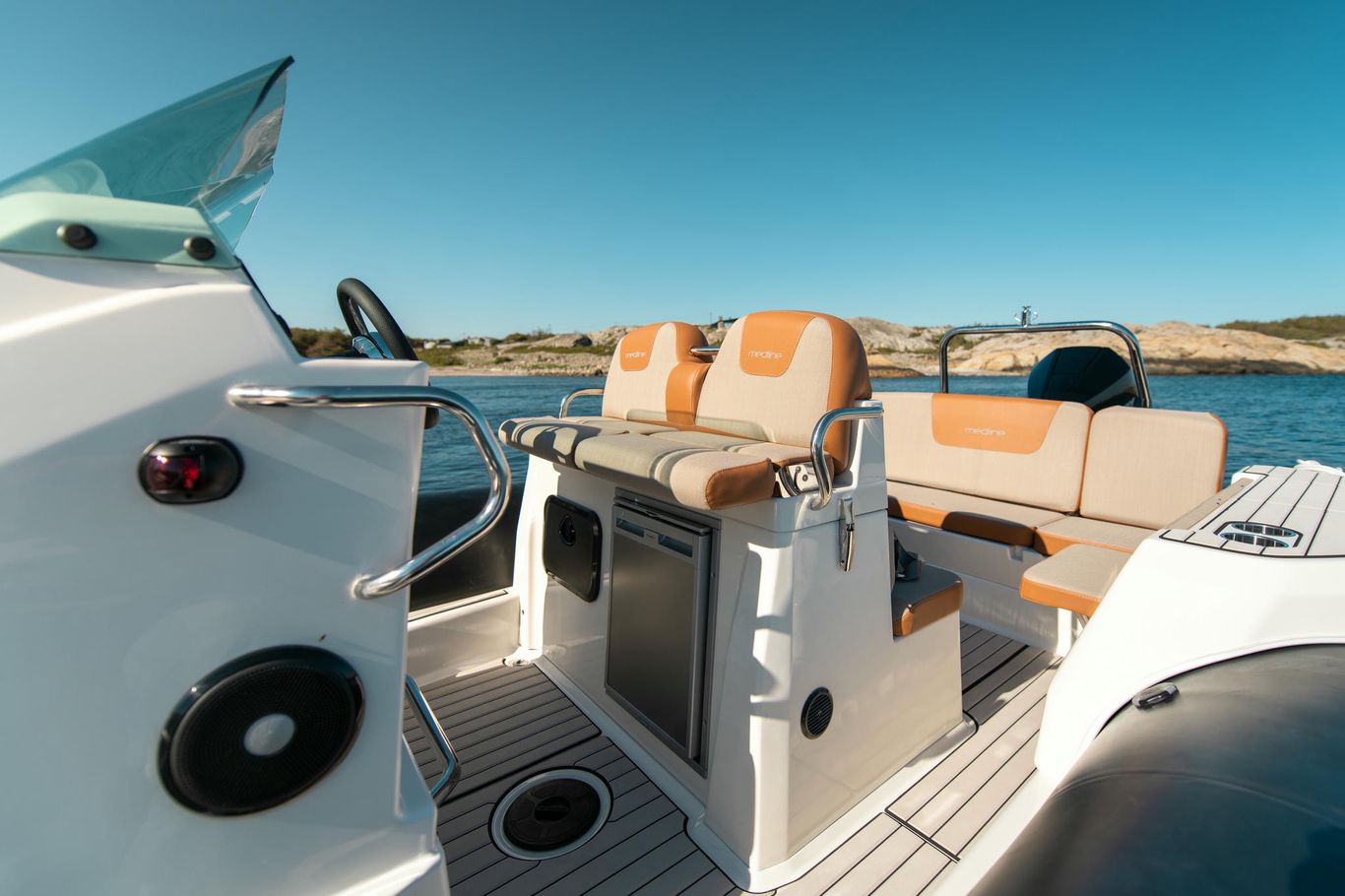 Perfect for long trips on the sea, the Medline 7.5 is a true private oasis thanks to its transformable surface, which can be transformed into a sundeck. Created for long day trips, the Medline 7.5 is part of the new generation of Zodiac boats: rigid-hulled inflatable openly oriented towards leisure.