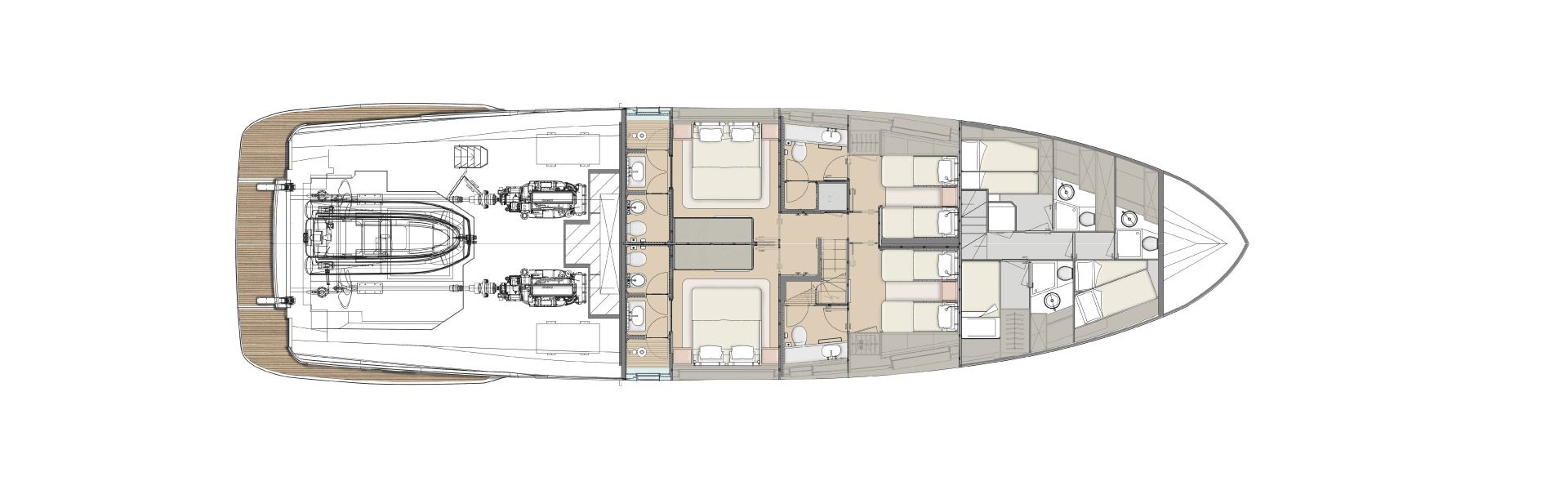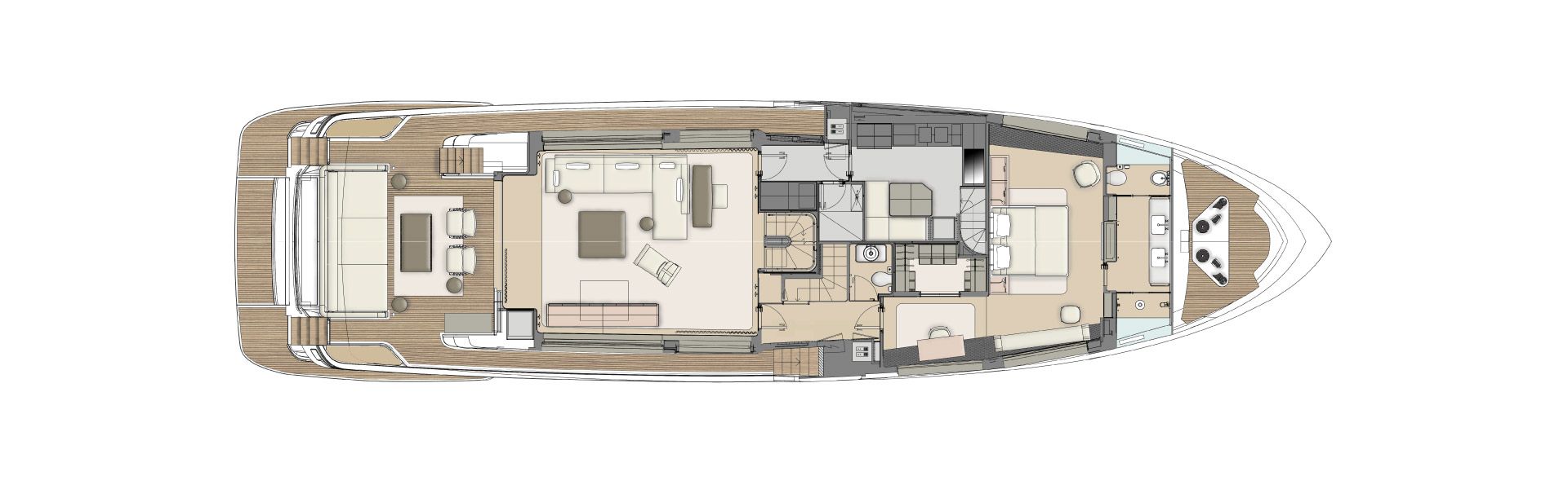 The Navetta 30 is the new superyacht in the Custom Line displacement range that marries comfort and safety with personalisation and seaworthiness. Her groundbreaking design is bristling with the explosive energy of a true masterpiece, with a paradigm that defines the state of the art on a quest for absolute wellbeing for owner and guests. At 28.43 m long and 7.3 m in the beam, the Navetta 30 is ambitious in size but rides the waves with a gossamer elegance that speaks eloquently of liberty and grace. The Navetta 30 goes beyond the line to inscribe an entirely new one: crisp, strong, a watershed, a line of no return A living work of art that defies trends, confounds expectations and lays down a whole new language of design, a torchbearer for future generations of yachts. Classic lines meet contemporary art in an endless harmony of fluidity and poise.