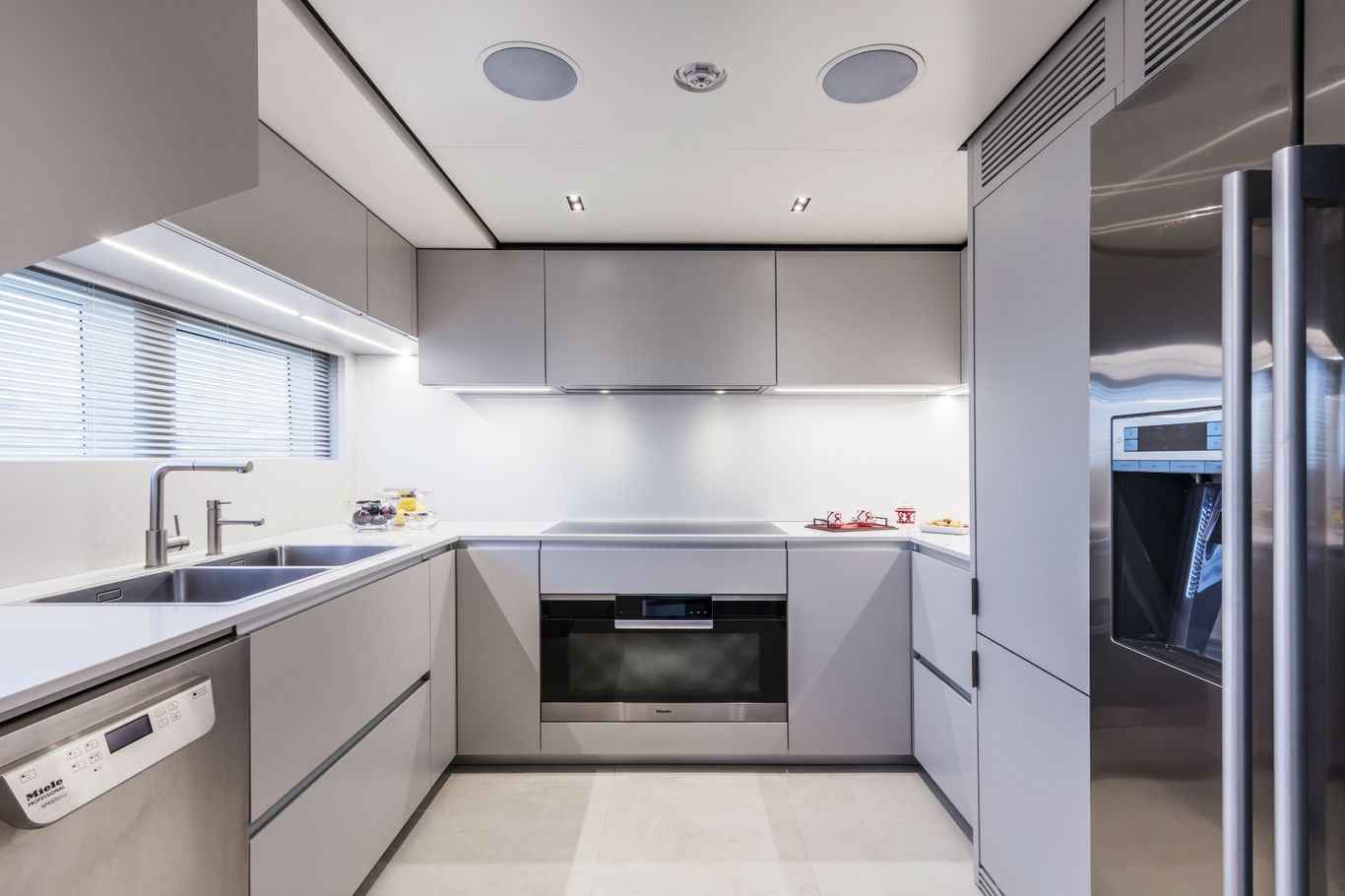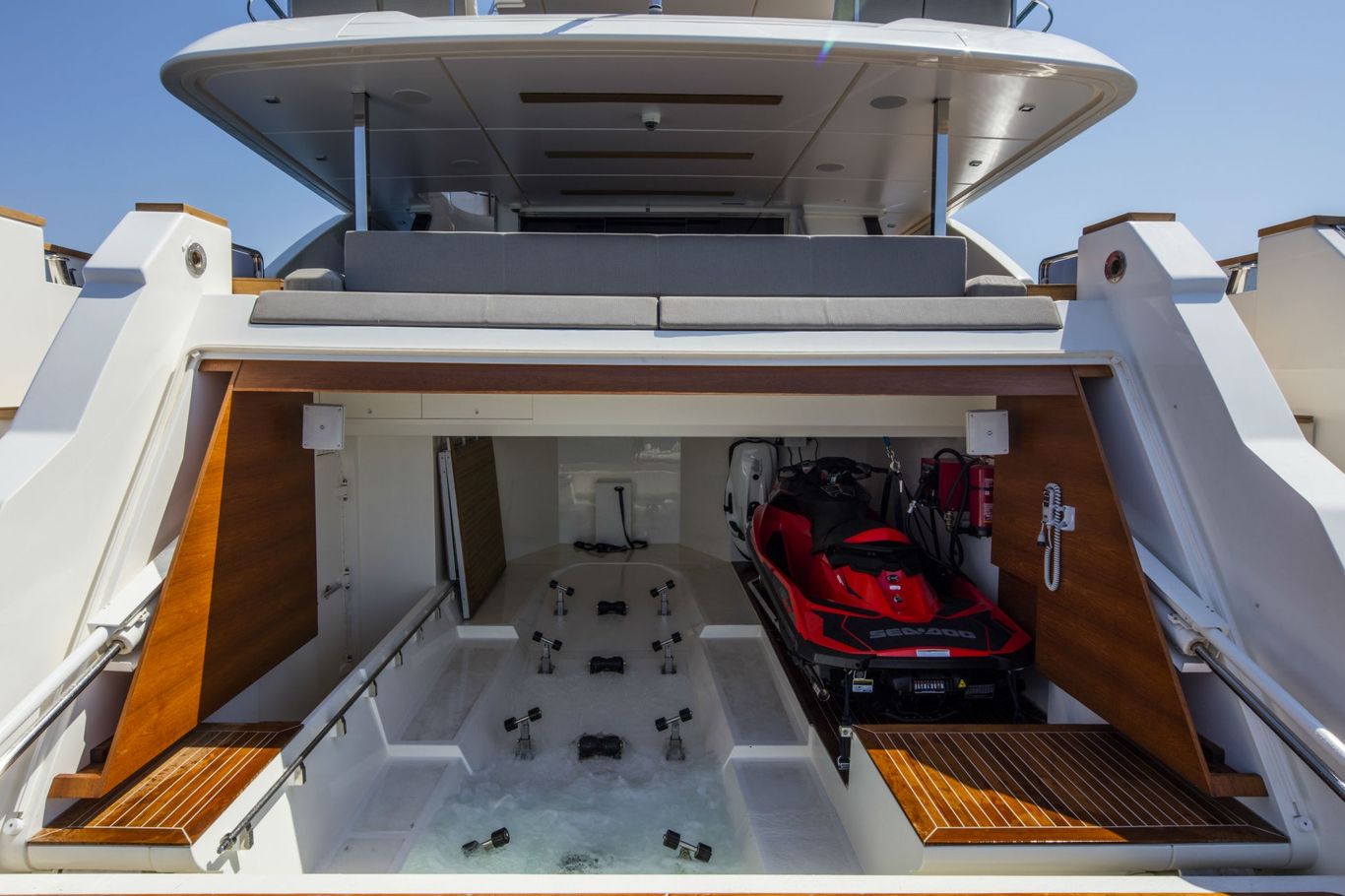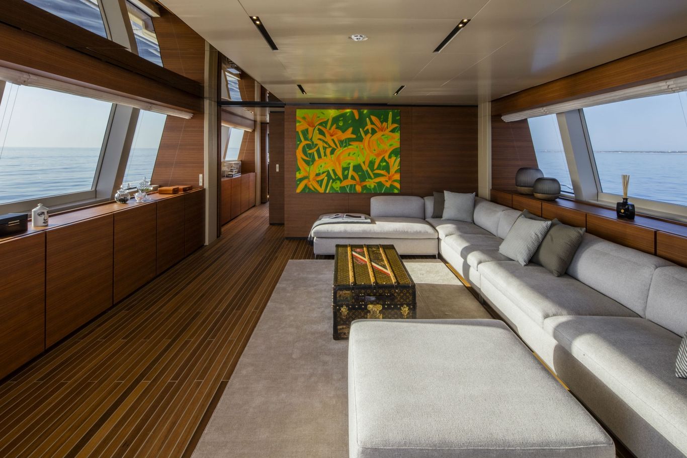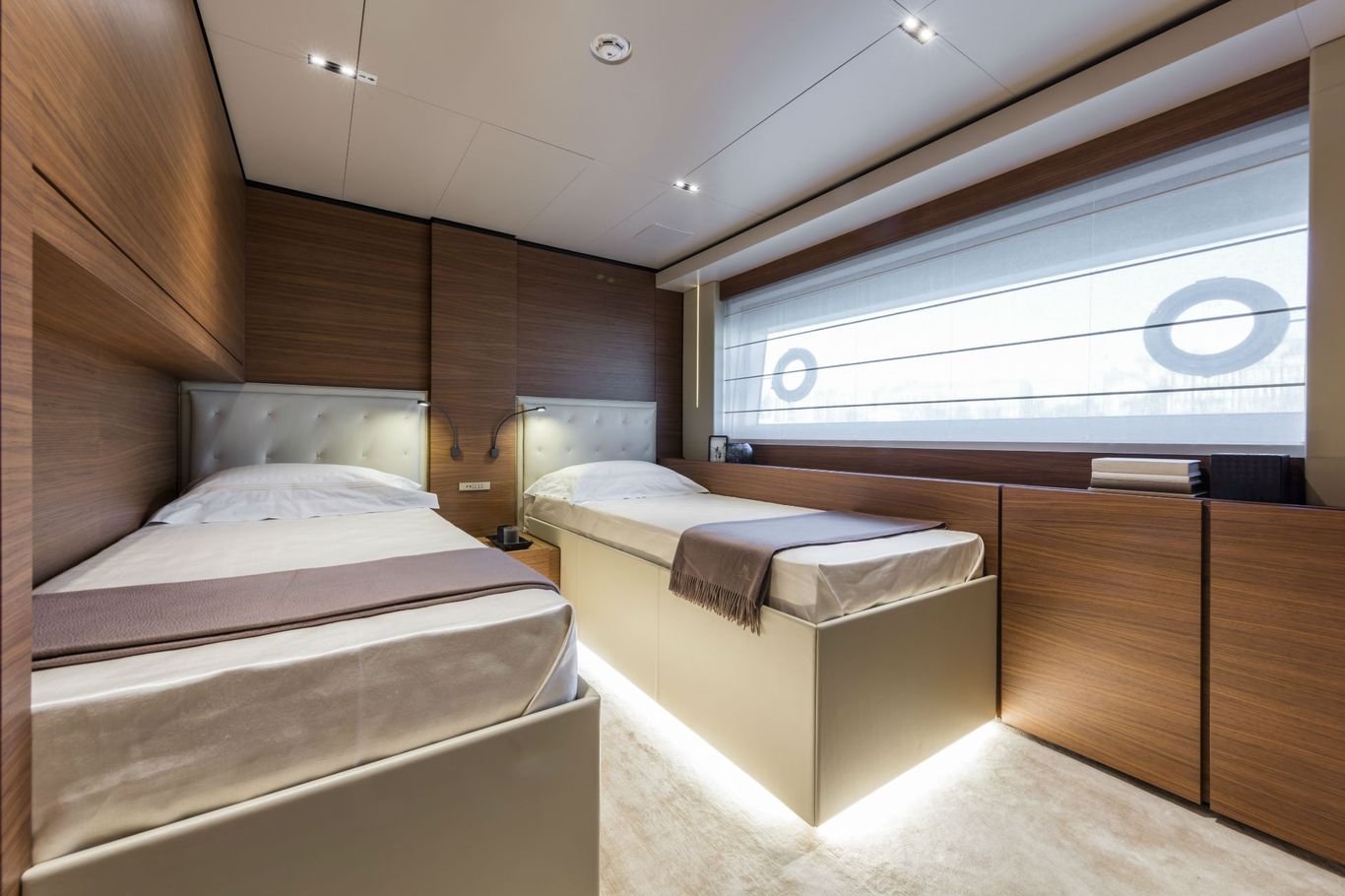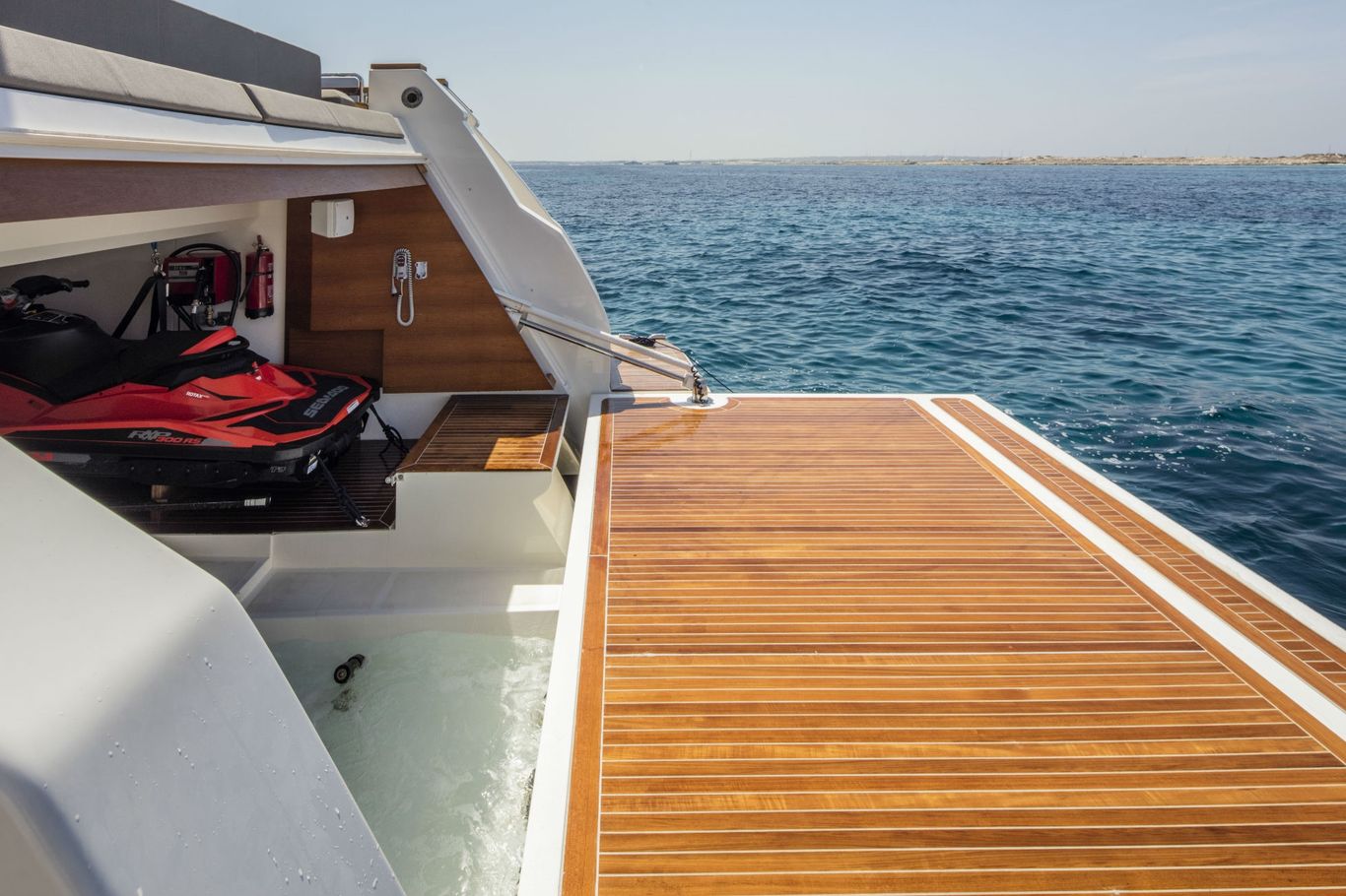 In a world that, now more than ever, is in need of beauty, the Navetta 33 exudes the subtle charm of an alluring and sophisticated diva of the waves, enticing with its beguiling blend of styles, forms and inspirations. Nothing is quite as chic as the new Custom Line semi-displacement yacht, which caters to the desires of every owner who wishes to savour the joys of sailing by making the step up from simple luxury to genuine refinement. The Navetta 33 is the product of the joint efforts of the Product Strategy Committee, headed by Piero Ferrari, along with the Group’s Engineering Department, whose architects and designers worked on the interior design, and Zuccon International Project, which was responsible for the exterior design. This yacht (108.3 ft.) introduces considerable technical advances to the line, which serve to complement the innovations that have already been admired in previous Custom Line models. For instance, the hull features a bulbous forward section and delivers performance at the top of its class in terms of seaworthiness and stability, with a range of up to 2,000 nautical miles at economical cruising speed. In addition, yacht owners and their guests can make the most of marvellous spaces across all 4 decks: from the wide-body master suite forward on the main deck, to the 4 guest cabins on the lower deck. The Navetta 33 furthermore features all of the technical innovations presented on Custom Line’s latest models: the patented DMT system for optimum use of the stern area; VOTIS software for flexible, practical management of the infotainment systems on board; and an integrated helm station, for completely safe sailing and monitoring of the systems and equipment on board. Absolute comfort is also guaranteed in terms of stabilisation when at anchor and when mooring, thanks to electro-hydraulic stabilising fins with zero speed mode, in addition to, on the first unit, two Seakeeper gyroscopic stabilisers.
