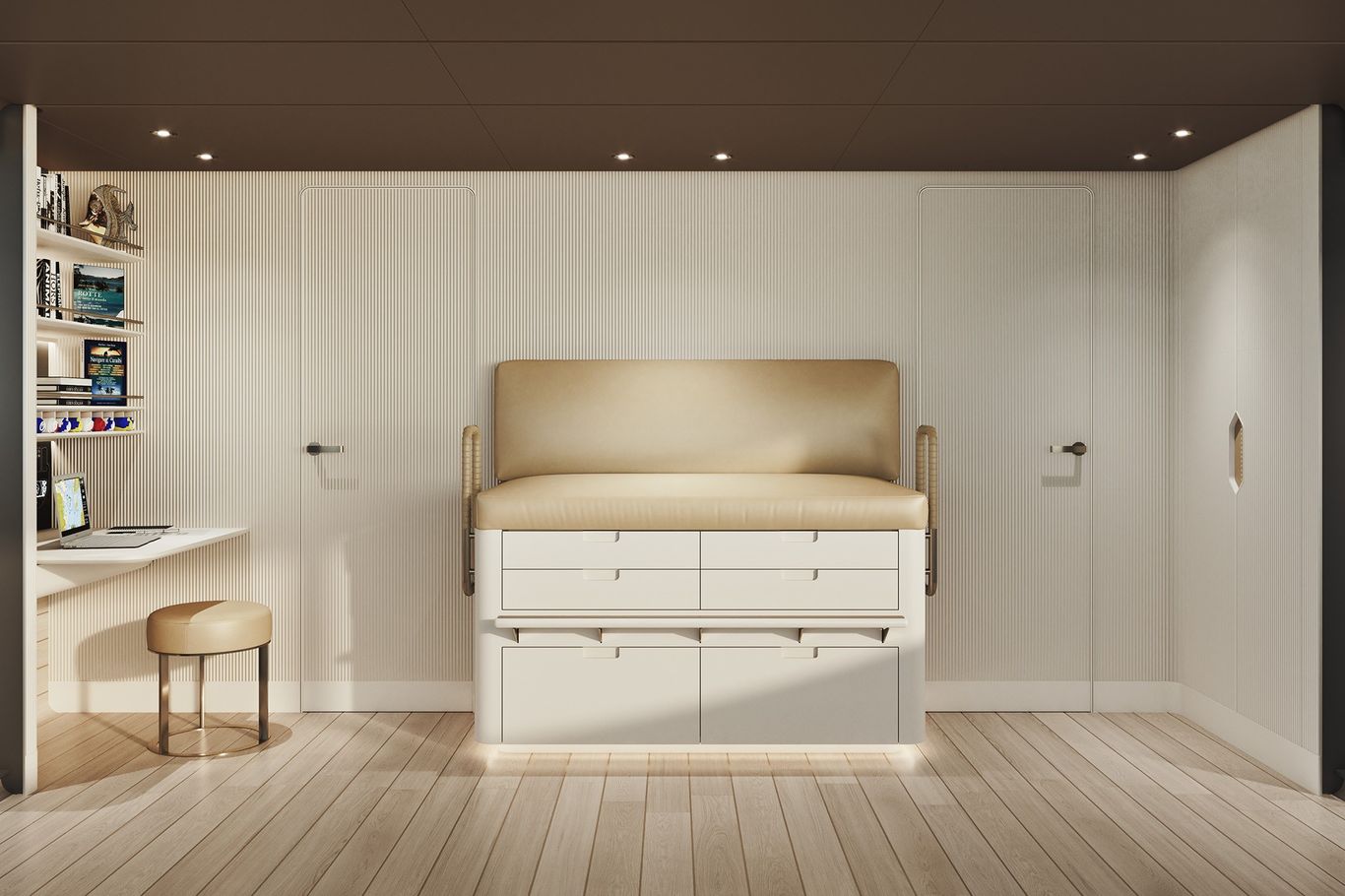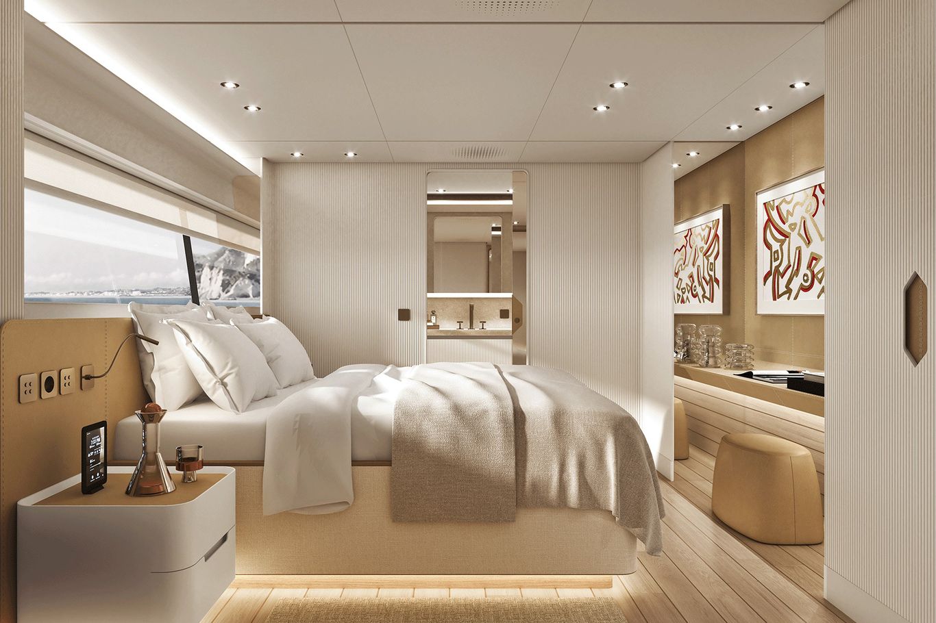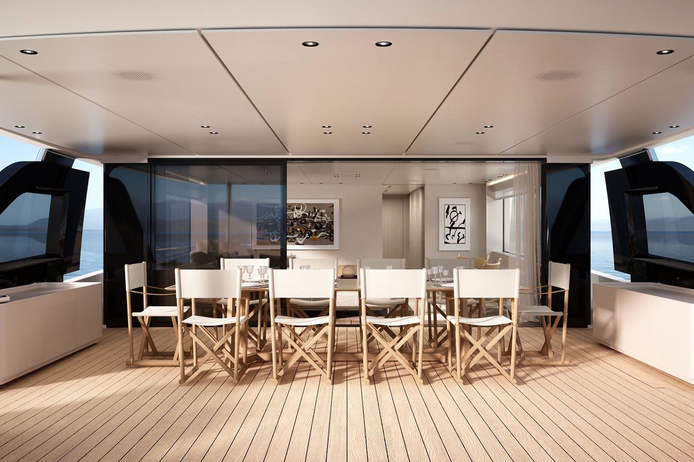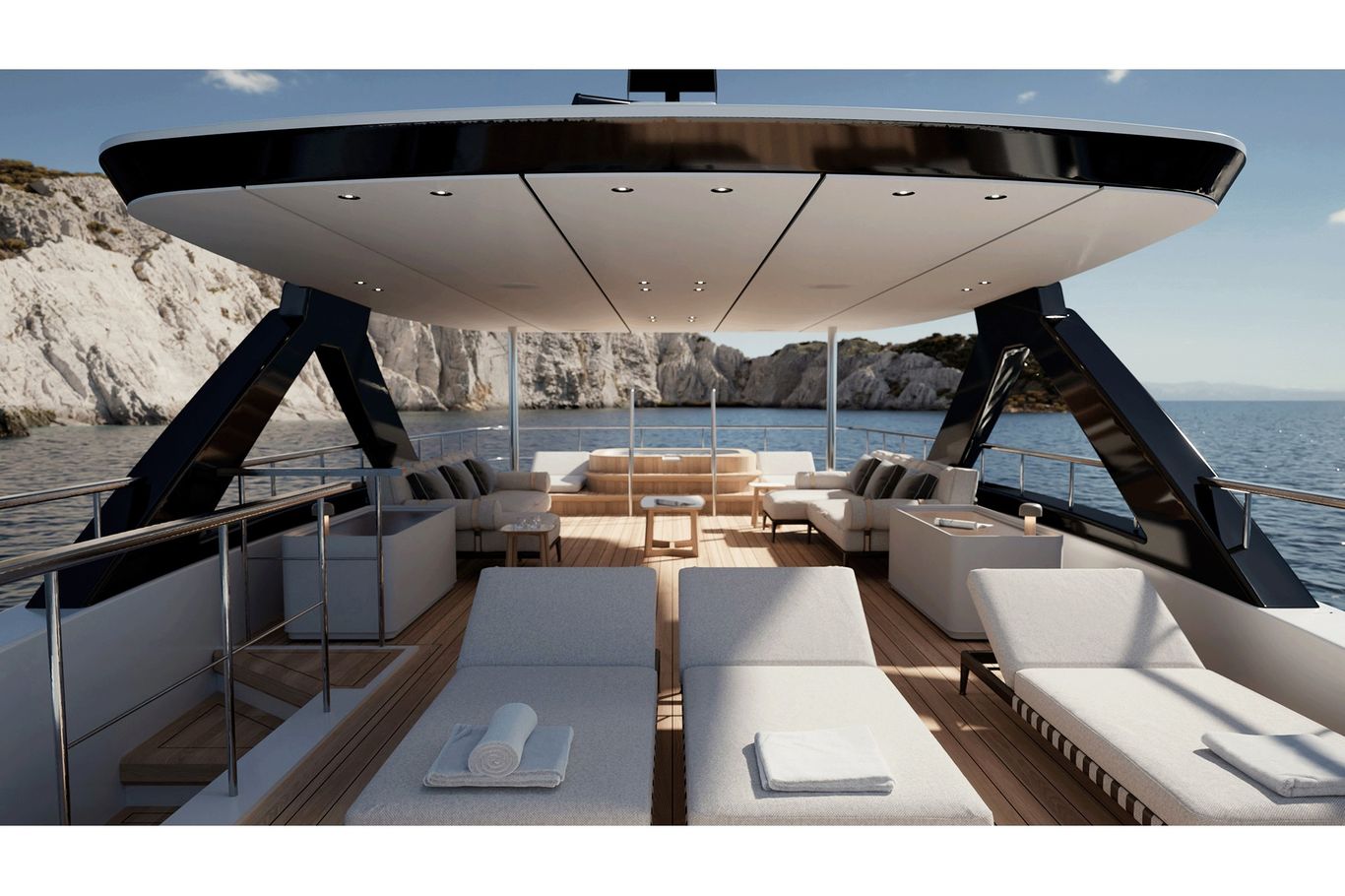 Inside, the atmosphere is transformed: pale woods, neutral fabrics, and vast windows create a light, open, and airy ambiance—perfect for those seeking a modern, residential-inspired retreat at sea. The layout remains refined with five guest cabins, including a main-deck owner’s suite, and four crew cabins, ensuring privacy and comfort for all.