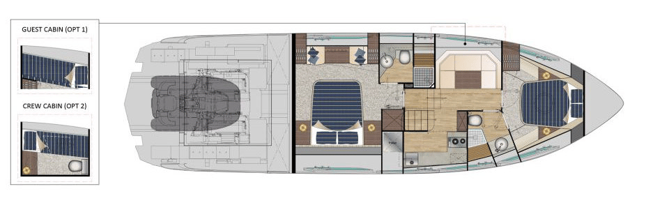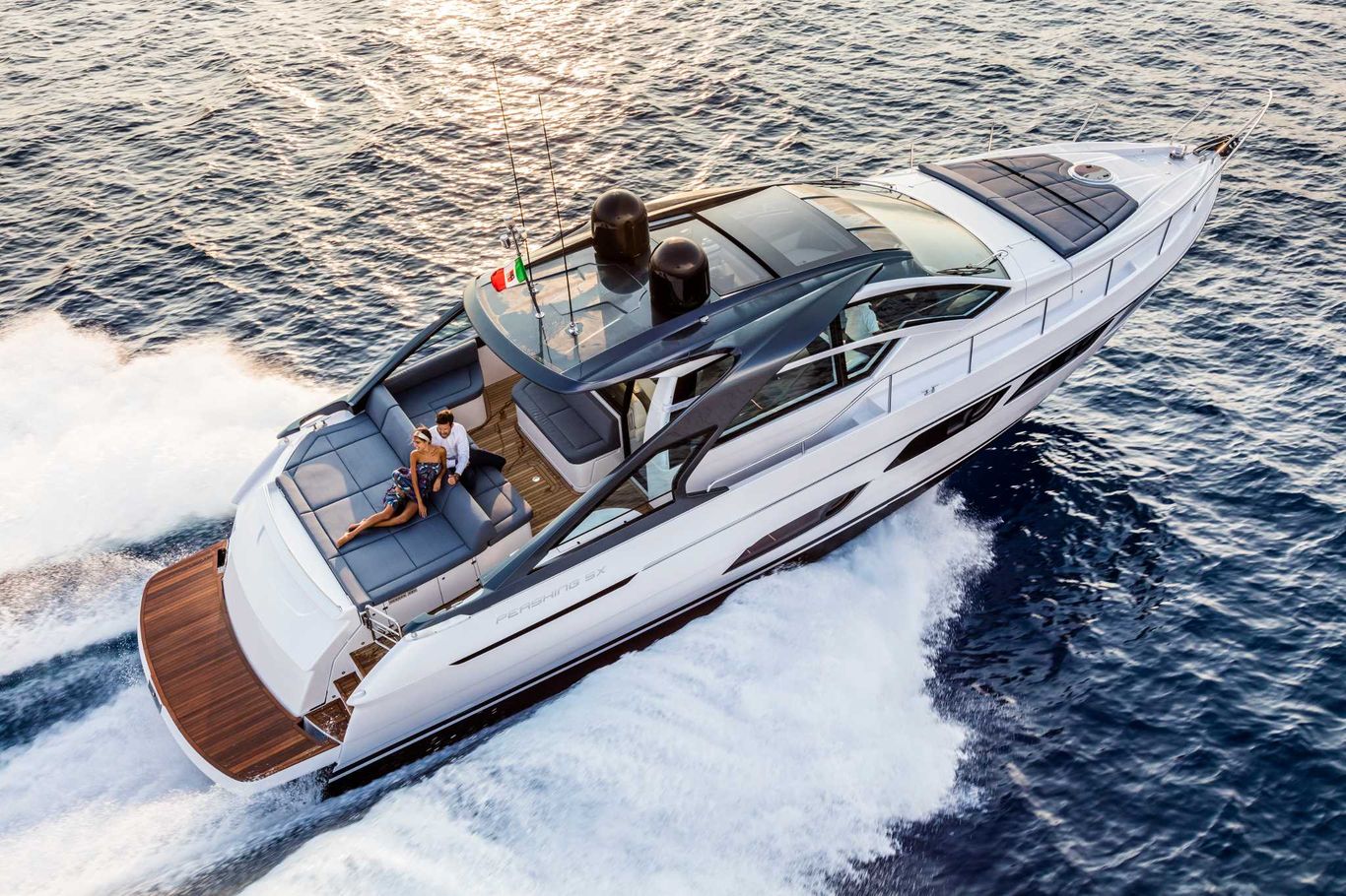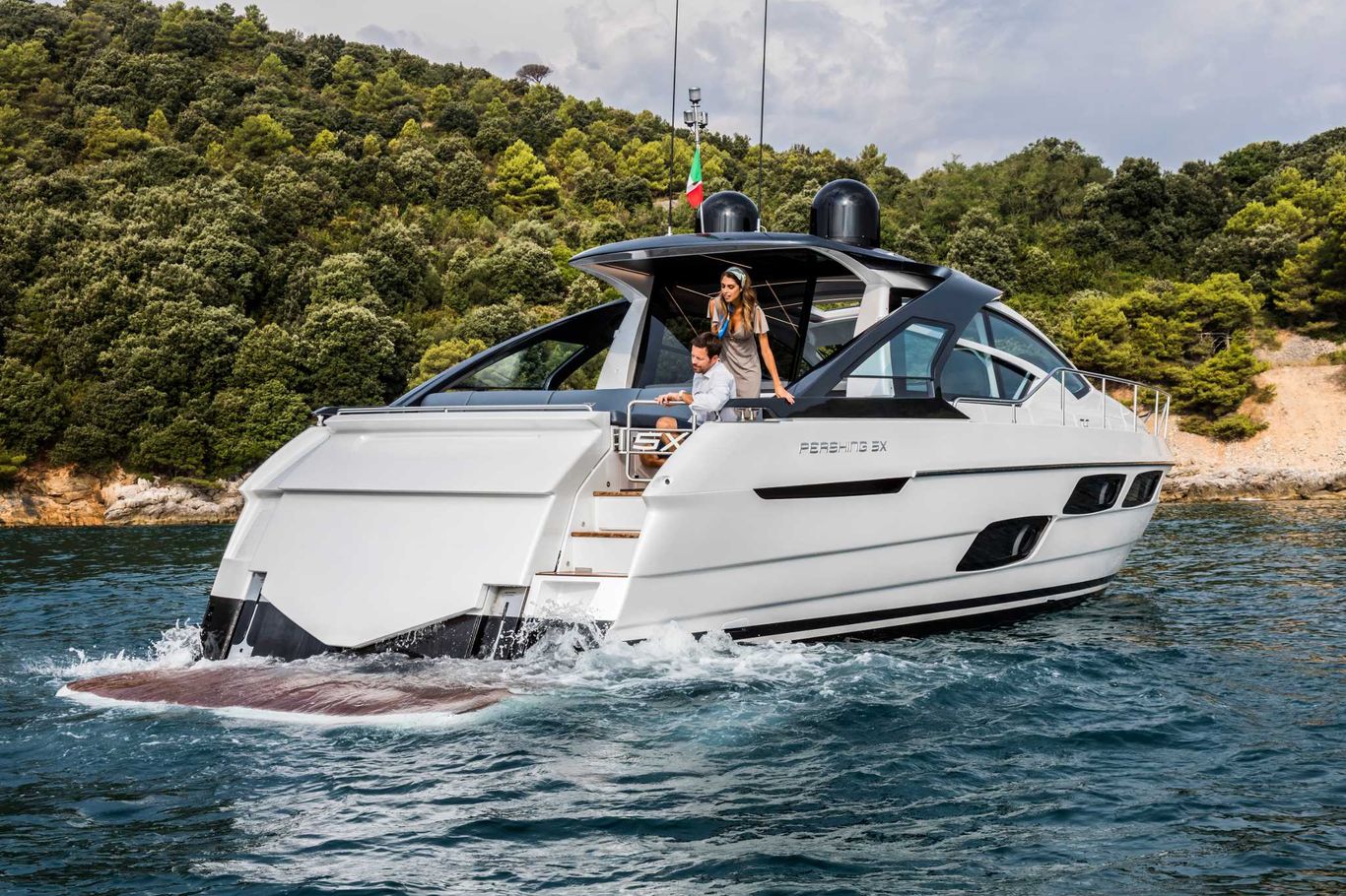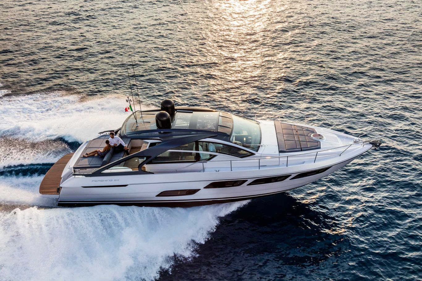 The first of the “Generation X” creations. A bold coupé whose mark – a code used in the aeronautical world to refer to extreme performance and technological evolution – alludes to the unquenchable thirst to set sail for new horizons at great speed. Pershing 5X is the first page of a fabulous new chapter in the history of Pershing.