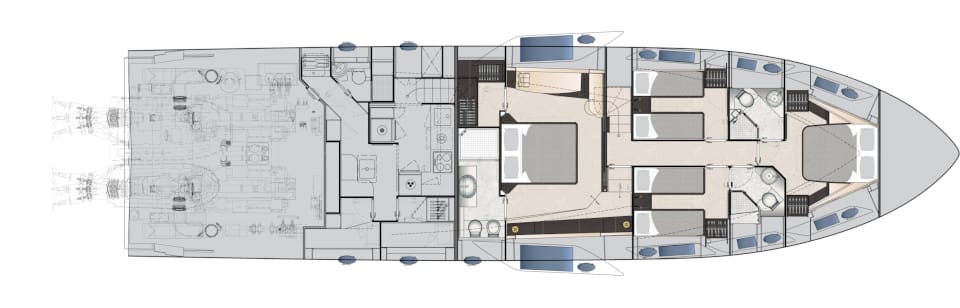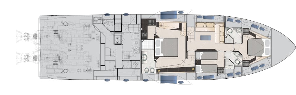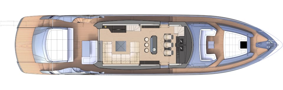 The carbon fibre revolution. The umpteenth leap forward in Pershing style, each and every component designed to amaze, starting with the construction material. Lightweight, fast, hyper-performing, with the most spacious, welcoming spaces and a new propulsion system, the Pershing 8X is the dream and masterpiece of the “X Generation”.