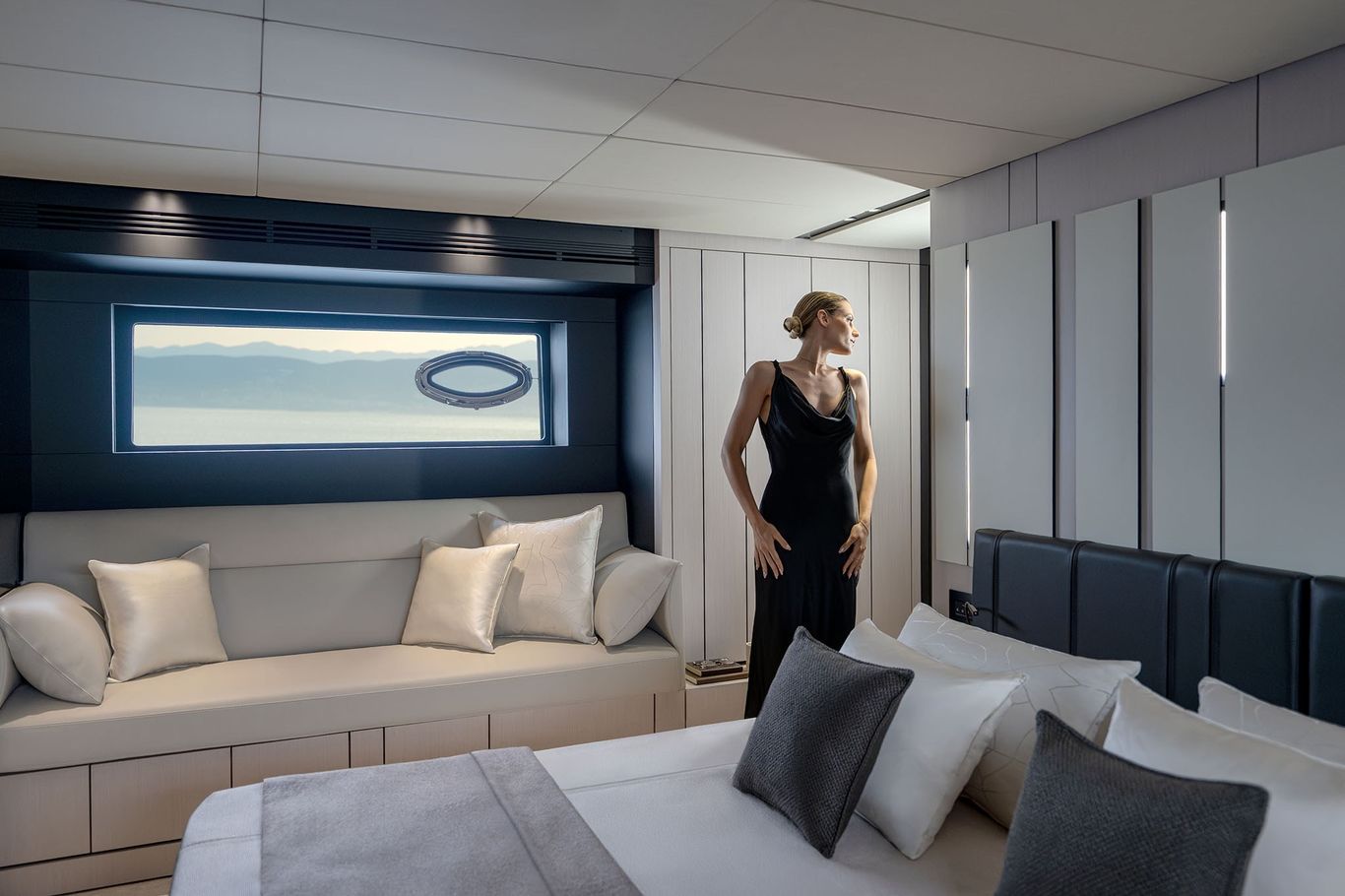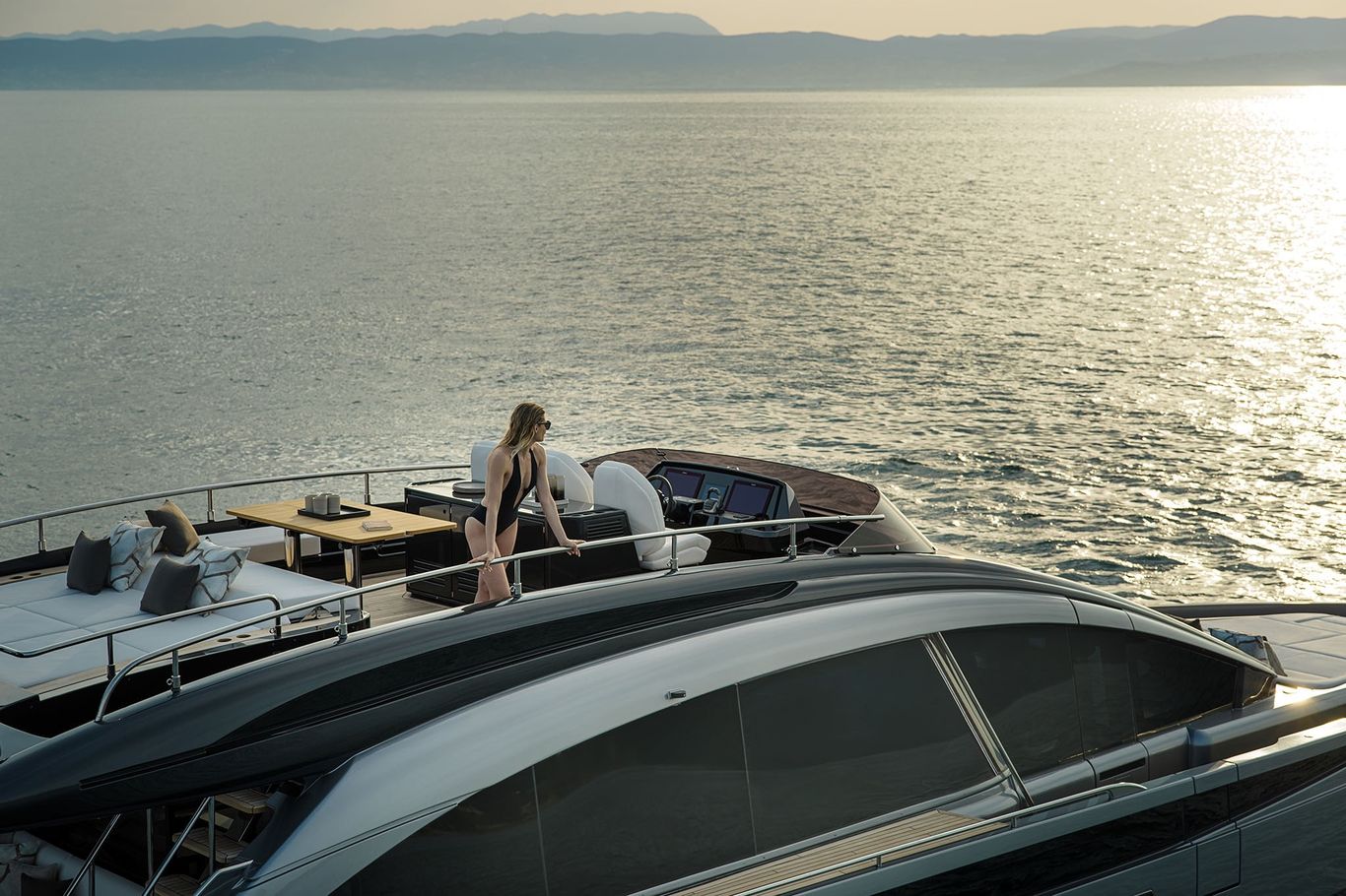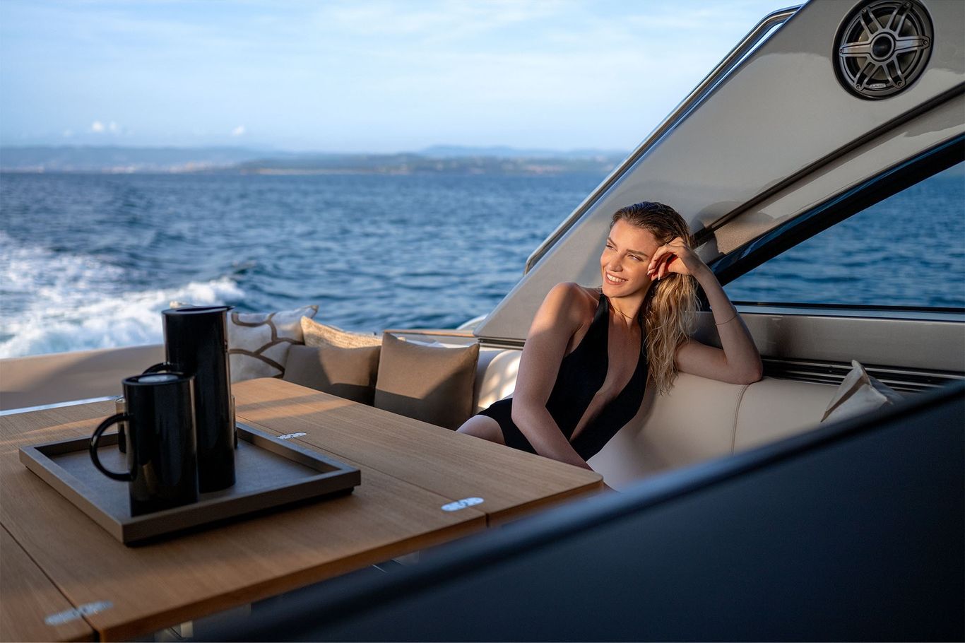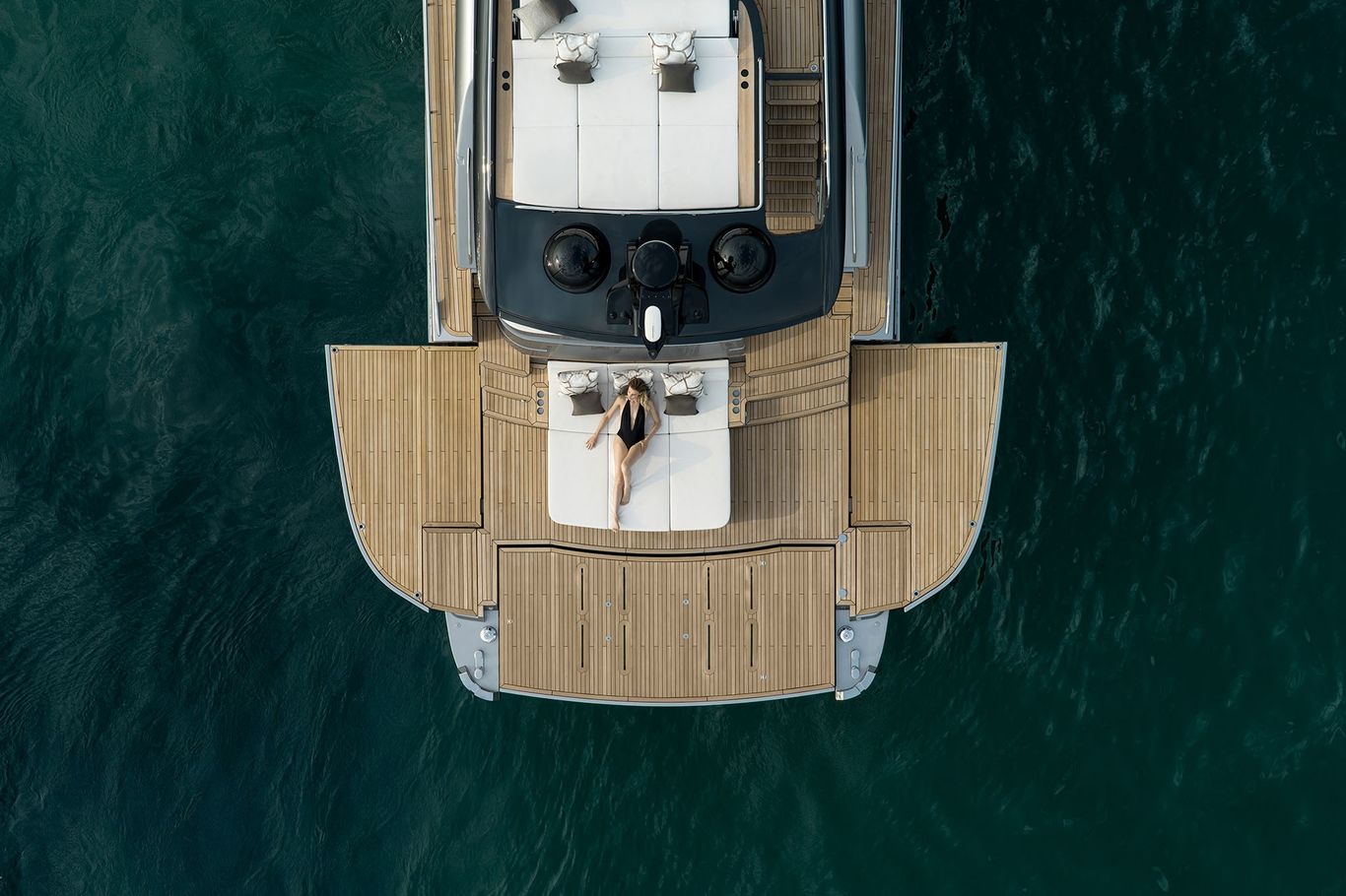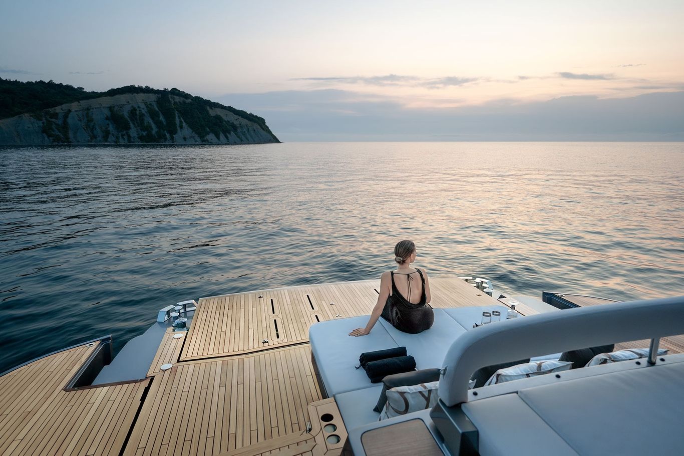 Sculpted by Vallicelli Design and engineered with precision by the Ferretti Group, the GTX 70 delivers 35 knots of exhilarating speed, powered by triple Volvo Penta IPS1200 engines. Yet it’s not just about pace — it’s about experience. With seamless indoor-outdoor living, an expansive 23 m² beach club enhanced by fold-out terraces, and a sun-soaked flybridge for al fresco moments, every detail invites connection — with the water, with guests, with the thrill of the open sea.