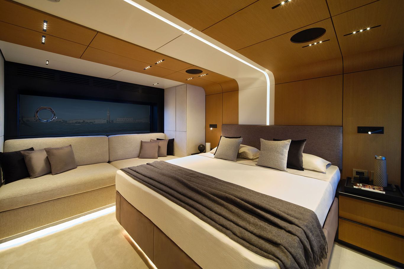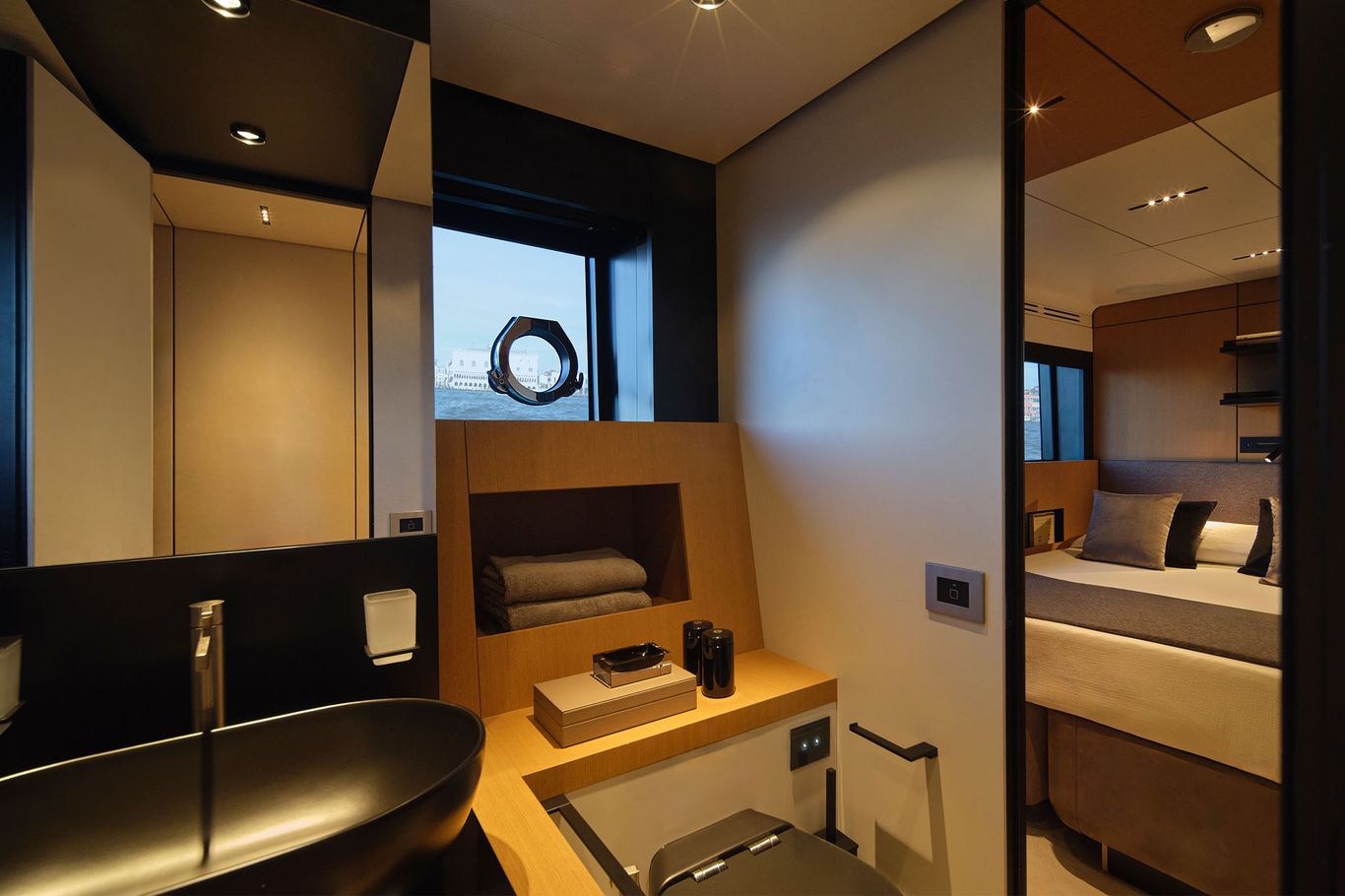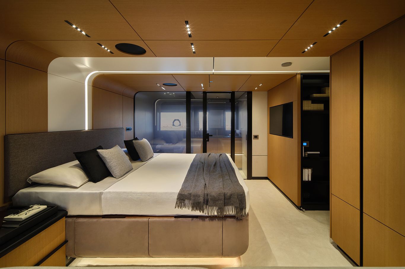 Wrapped in Wally’s sleek aesthetic, the wallywhy100 maximizes volume with a spacious owner’s suite amidships, complete with a smart glass-enclosed ensuite bathroom for a light, airy feel. A generous VIP cabin and twin cabin further challenge conventional space expectations.