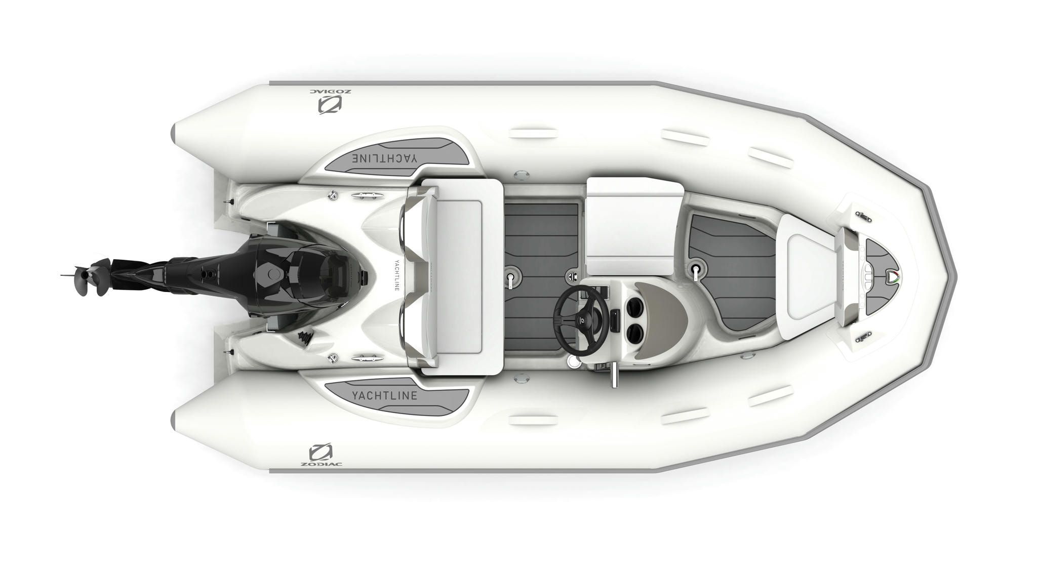 A stylish look even on the smallest model in the Yachtline range… This well-equipped luxury tender contains an ultra-comfortable bench seat and a high-end steering console. The Yachtline 360 will happily frolic in the waves alongside your boat.