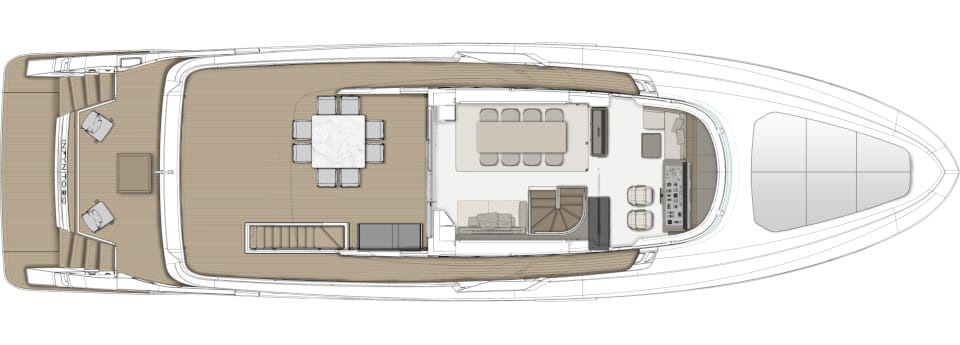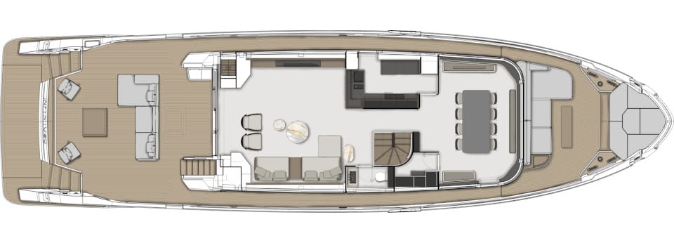 With no more limits and boundaries, the view sweeps far and wide. Boat and horizon come together on the spectacular All-Season Terrace, a true paradise on board for a stunning private experience at any time of year. You choose: a delightful spa with Jacuzzi, a private bar for convivial time in company, or a sophisticated lounge from which to gaze into infinity.